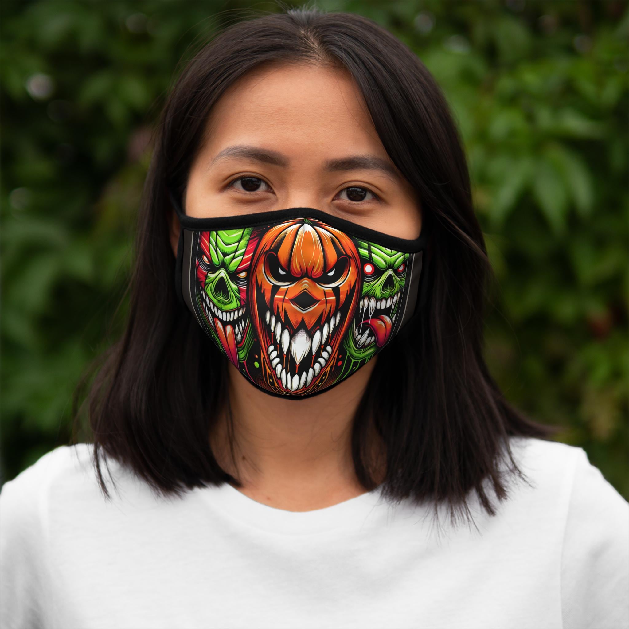 Introducing a unique fitted polyester face mask that combines style and practicality. This mask offers a vibrant design that stands out, making it not only a safety accessory but also a fashion statement. It's perfect for those who love to express their personality, whether at a festive gathering or during everyday errands. Ideal for Halloween celebrations, costume parties, or just to add a playful touch to your wardrobe, this mask caters to all ages who value comfort and creativity in their style. It's a must-have for anyone wanting to stay trendy and protected.