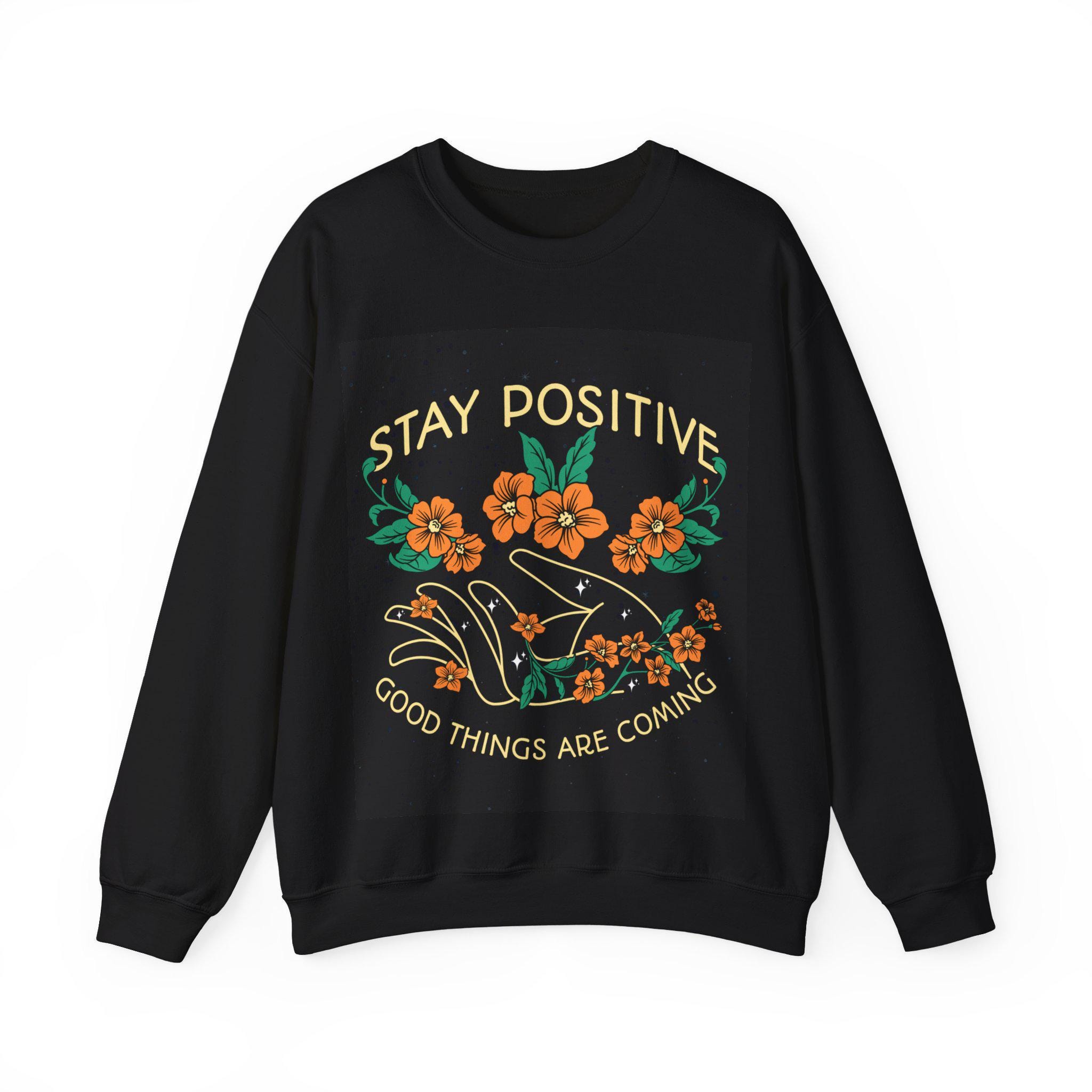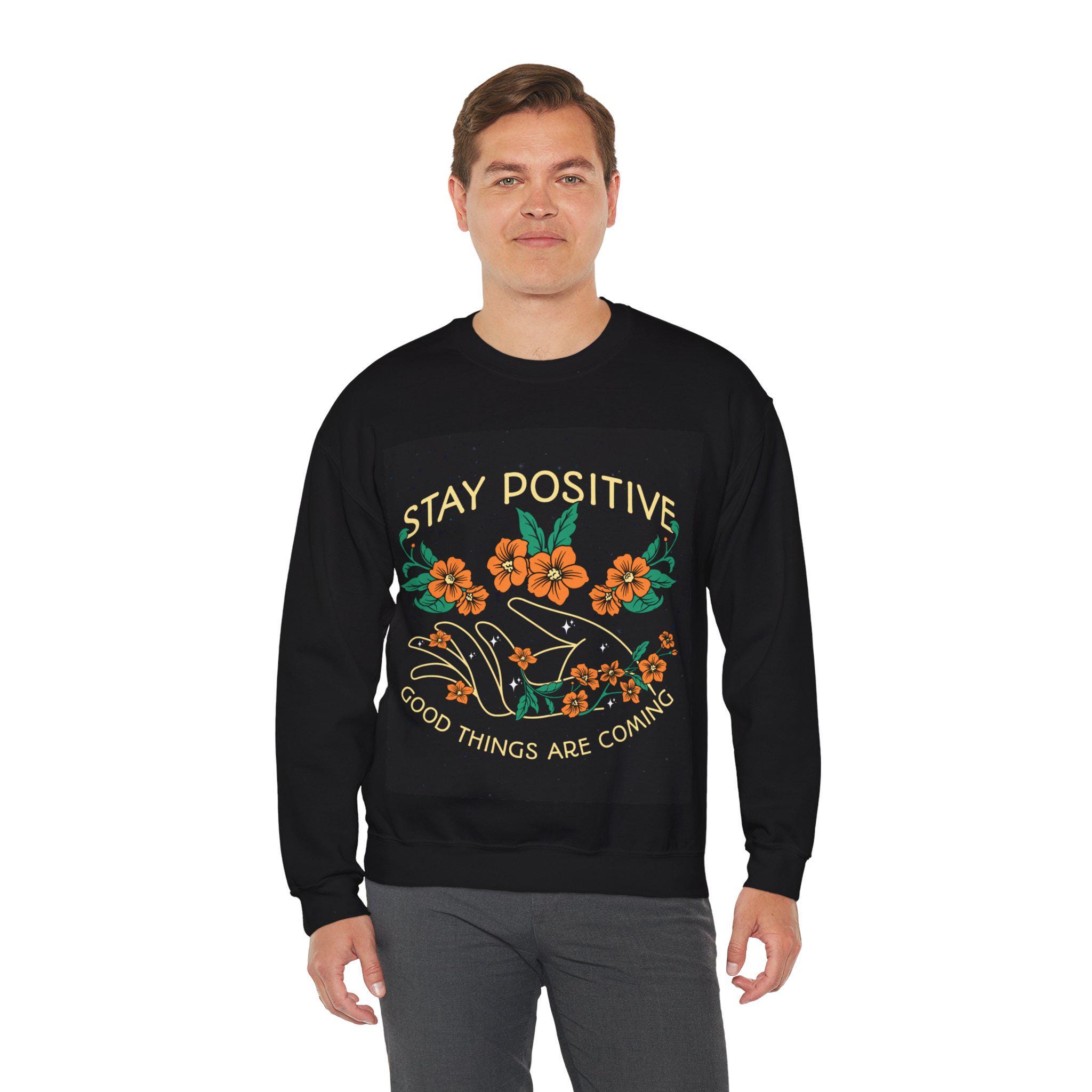 Stay warm while spreading uplifting vibes with this unisex heavy blend crewneck sweatshirt. Adorned with a floral design that showcases the inspirational message "Stay Positive, Good Things Are Coming," this sweatshirt is perfect for those who appreciate style combined with a positive outlook. Ideal for seasons of celebration and comfort, it fits seamlessly into casual outings or relaxed weekends at home. Whether you're enjoying cozy movie nights or heading out with friends, this sweatshirt elevates your wardrobe while making a statement about optimism. Perfect for gifting on birthdays or during festive seasons, it's suitable for anyone looking to add a touch of positivity to their daily life.