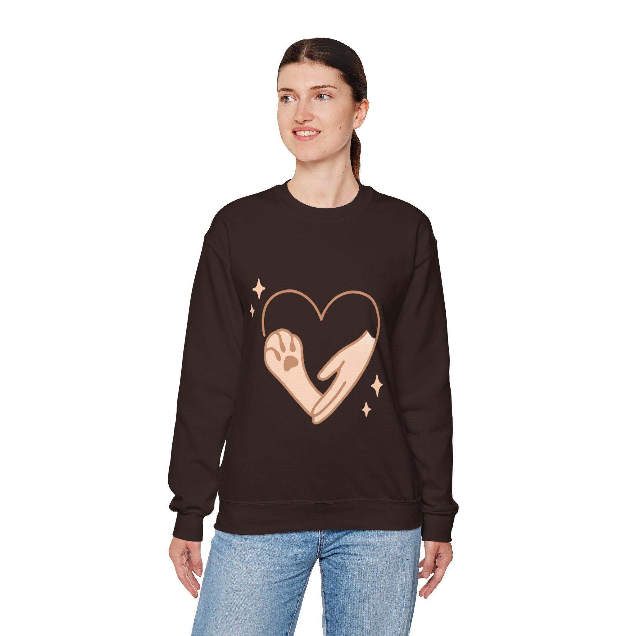 This cozy Unisex Heavy Blend™ Crewneck Sweatshirt exudes warmth and love, featuring a heartwarming design that showcases a hand and paw print intertwined, perfect for animal lovers. Designed for ultimate comfort, it fits seamlessly into casual outfits, making it a great companion for cozy movie nights, casual brunches, and outings with friends. Ideal for adults who cherish their furry companions, this sweatshirt is a delightful gift choice for birthdays, holidays, or just to show appreciation. Whether you're celebrating International Dog Day or simply enjoying a relaxing weekend, this sweatshirt adds a touch of joy to everyday life.