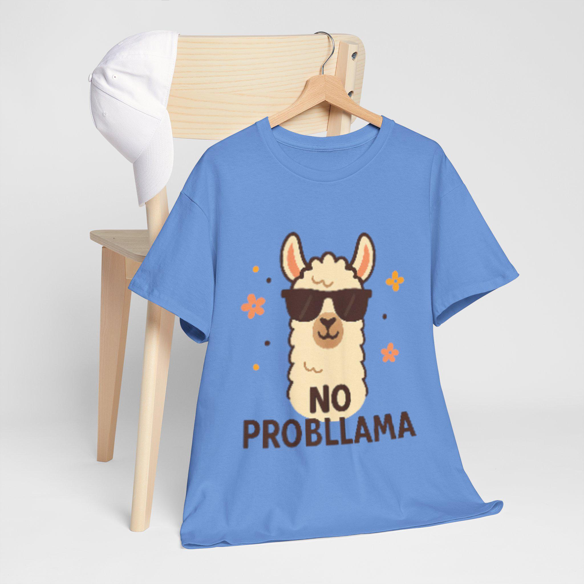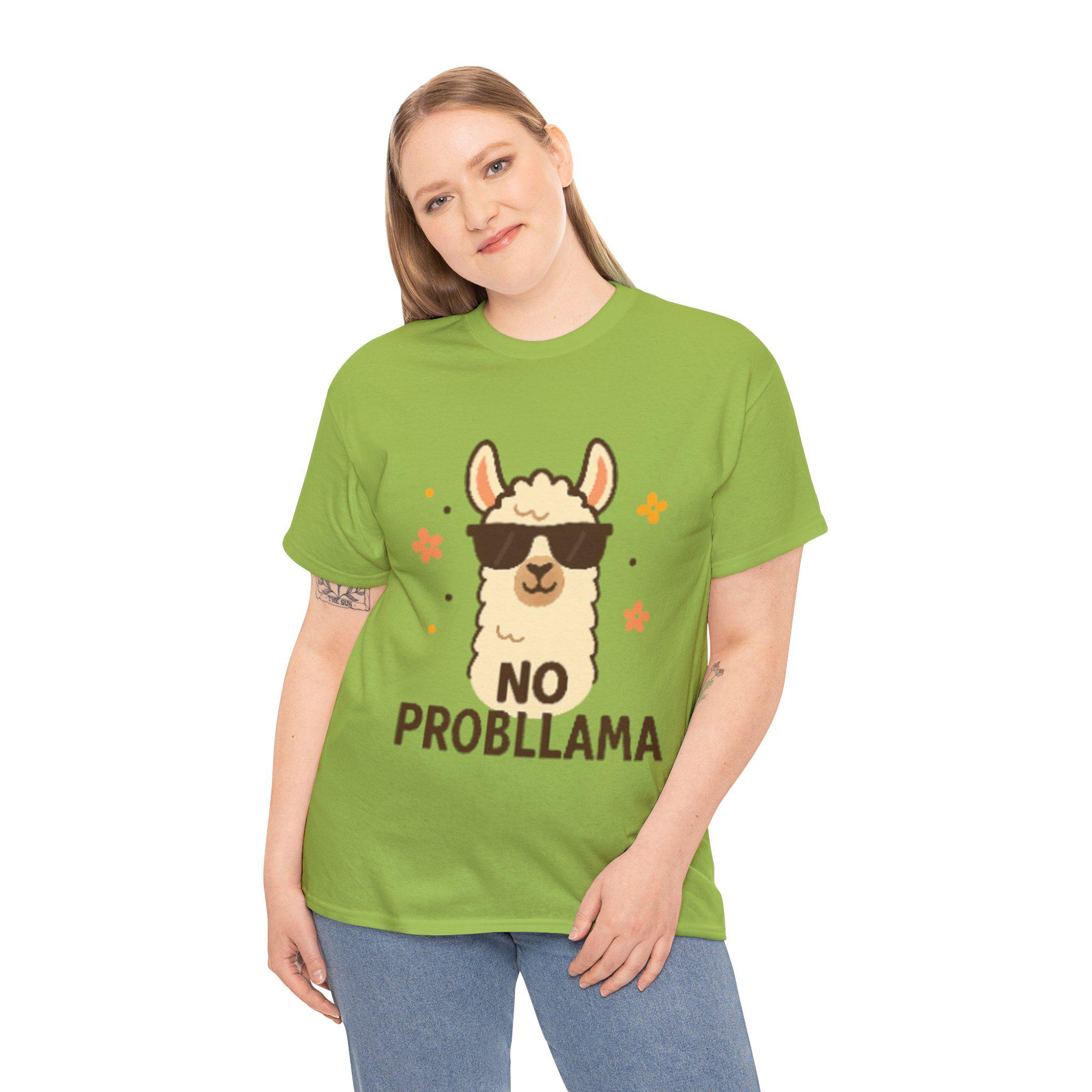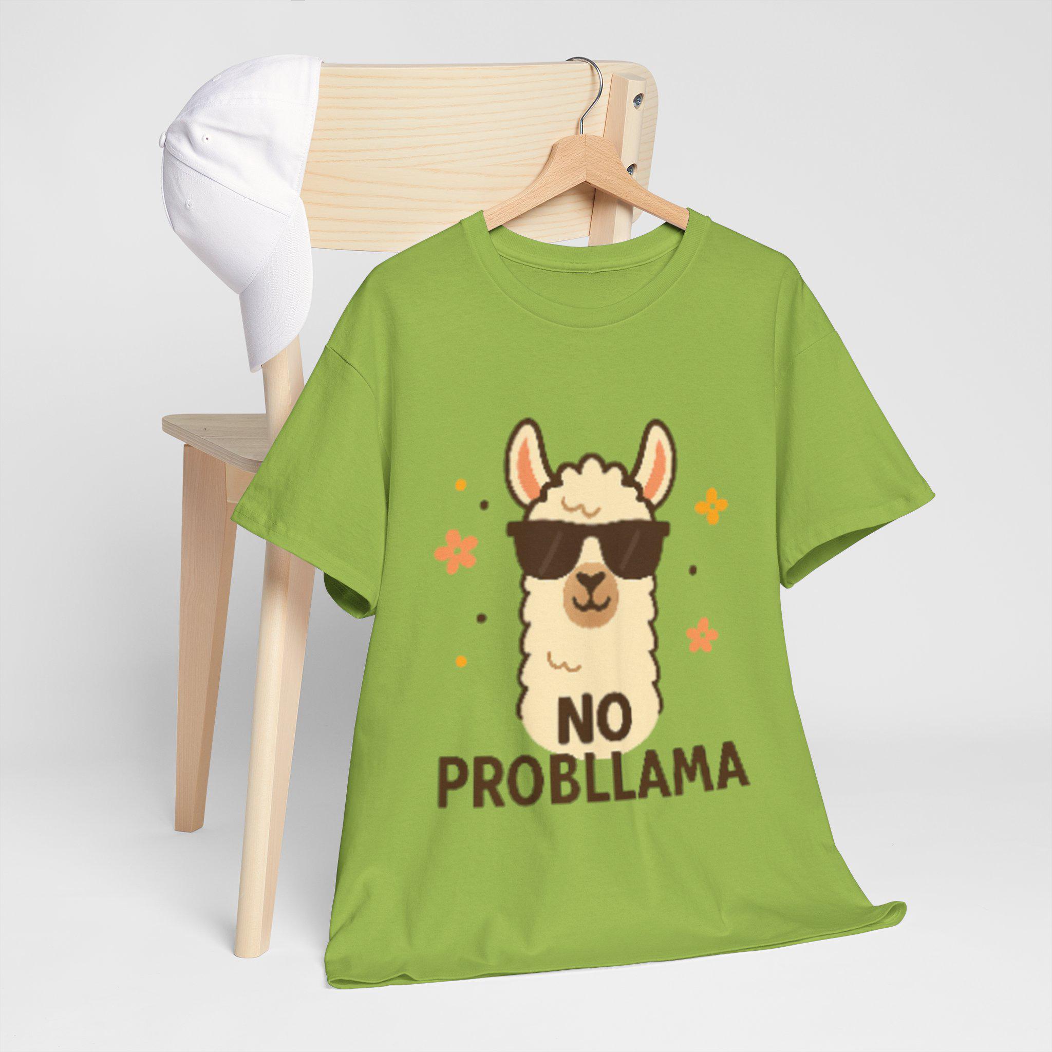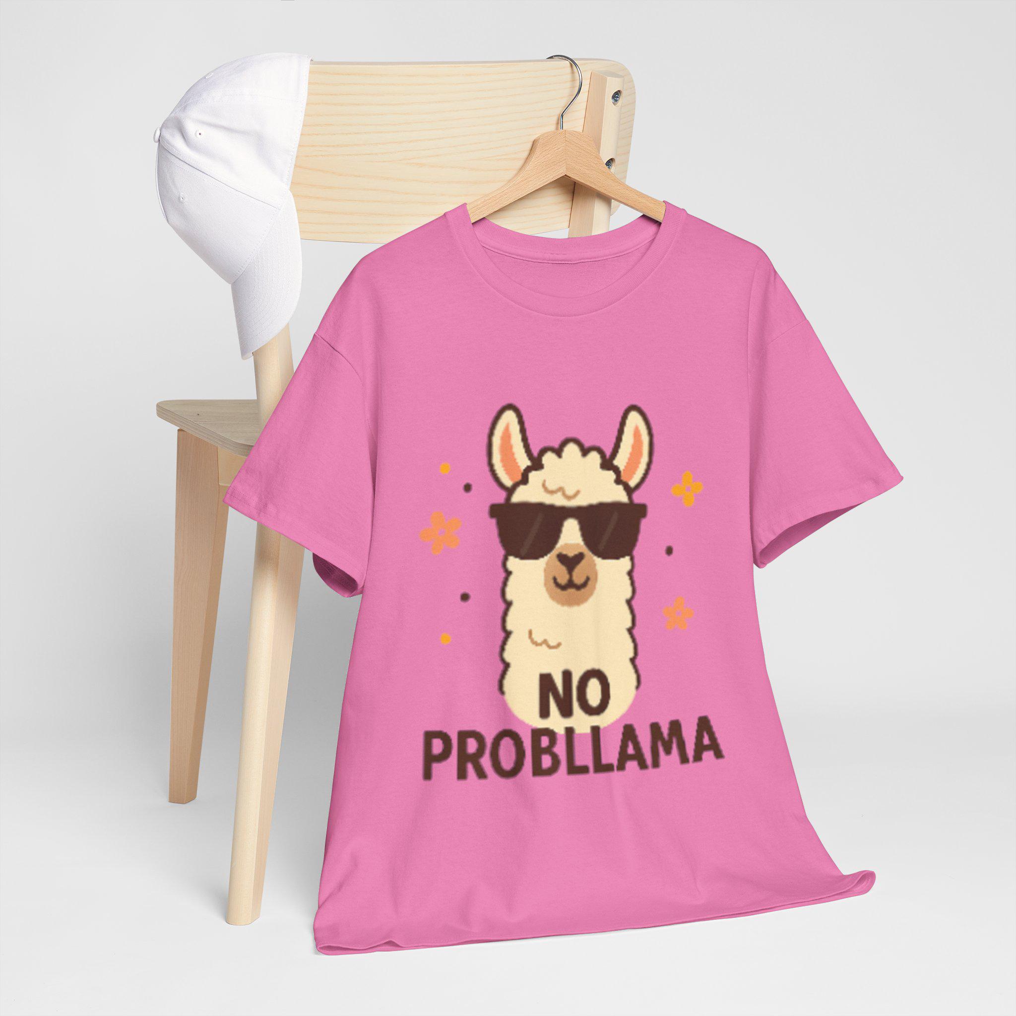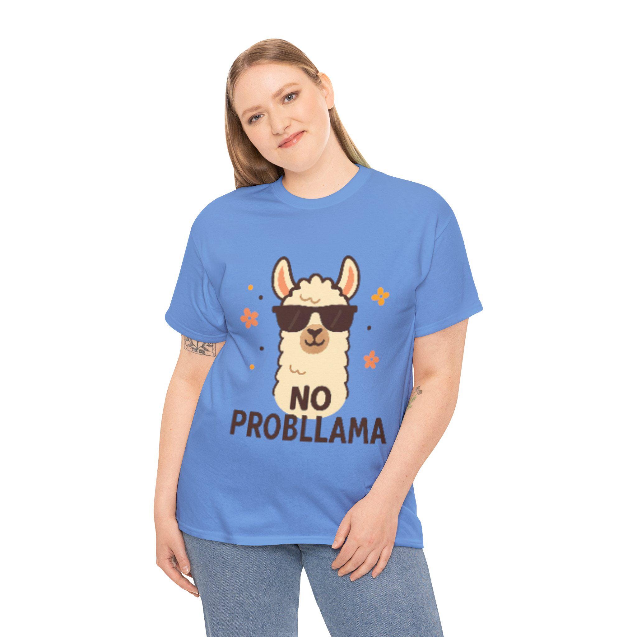Introducing our Unisex Heavy Cotton Tee, perfect for those who love to express their individuality with a fun twist. Featuring an adorable llama graphic with sunglasses and the cheeky slogan 'NO PROBLLAMA', this tee radiates a playful and relaxed vibe that easily complements any casual outfit. Whether you're lounging at home, hanging out with friends, or attending a casual gathering, this shirt is your go-to choice for comfort and style. Ideal for llama lovers and anyone who enjoys lighthearted humor, it’s a fantastic gift to celebrate birthdays, special get-togethers, or just to brighten someone's day! Perfectly suited for everyday wear or as a fun piece for occasions like holidays and relaxed celebrations.