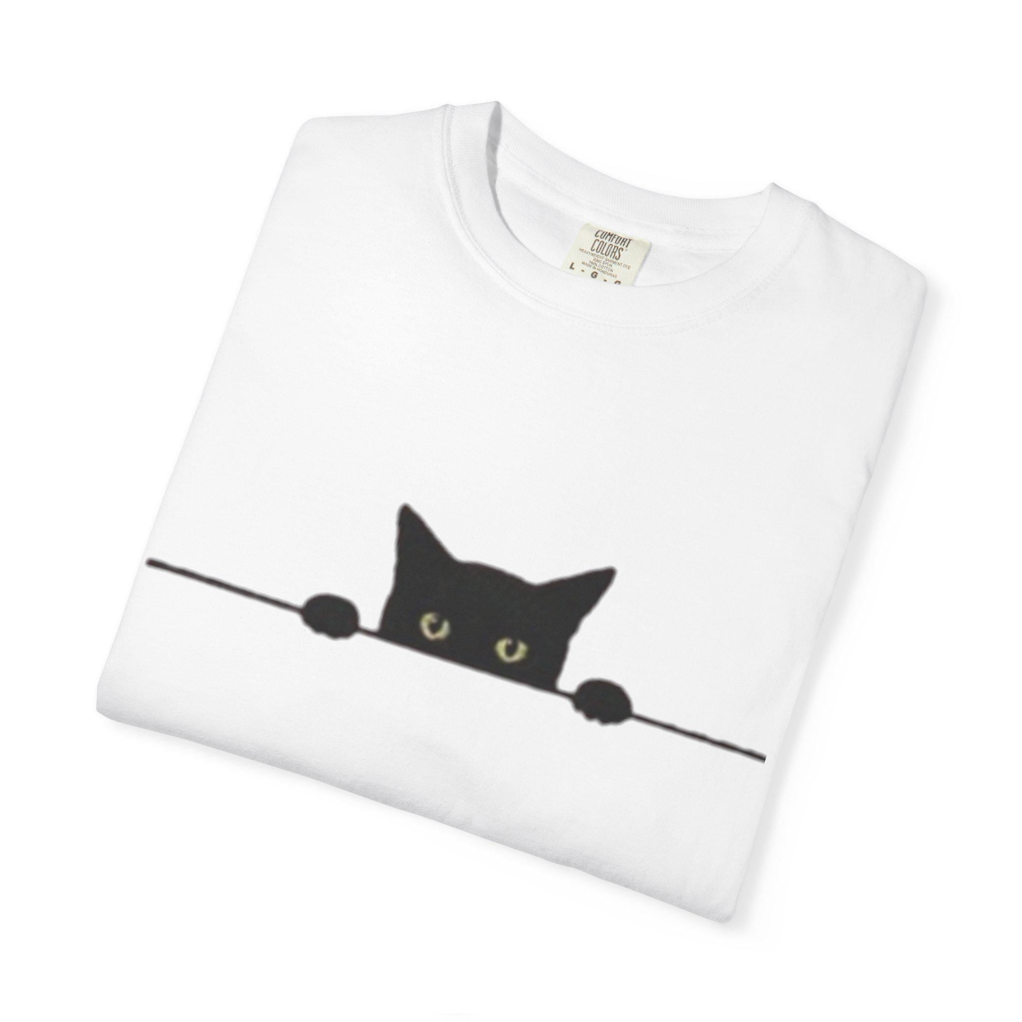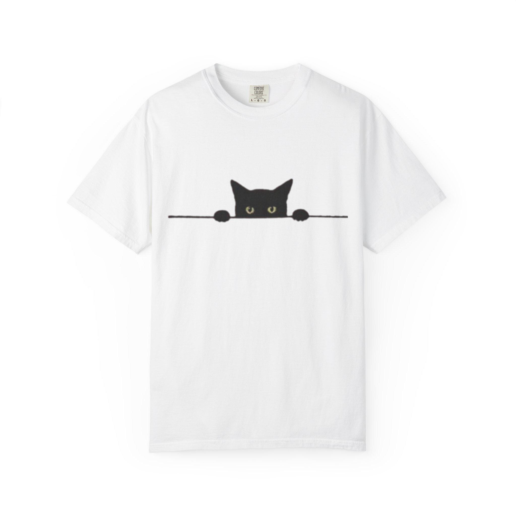 Soft, lived-in tee with a playful, curious cat peeking over a line—quiet charm for everyday wear. The garment-dyed cotton feels broken-in from the first wear, with a relaxed fit that drapes easily over the shoulders. Subtle stitching and a tubular knit body keep the silhouette clean while the small, centered illustration adds a touch of personality without shouting. Wear it around the house with a mug and a book, out to a casual coffee meet-up, or layered under a jacket for neighborhood walks. Cat people will recognize the tiny, observational humor: it’s the kind of shirt that sparks a smile and invites a second look.