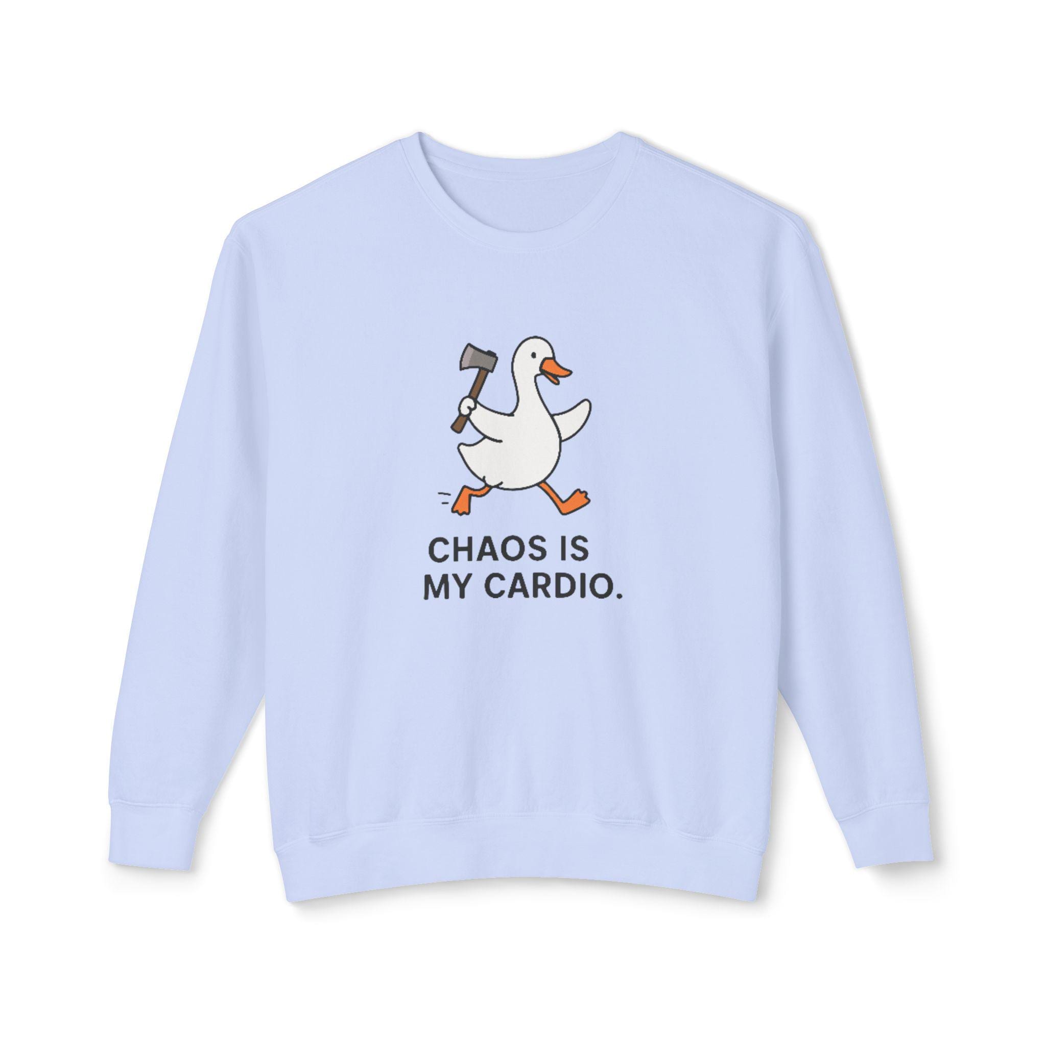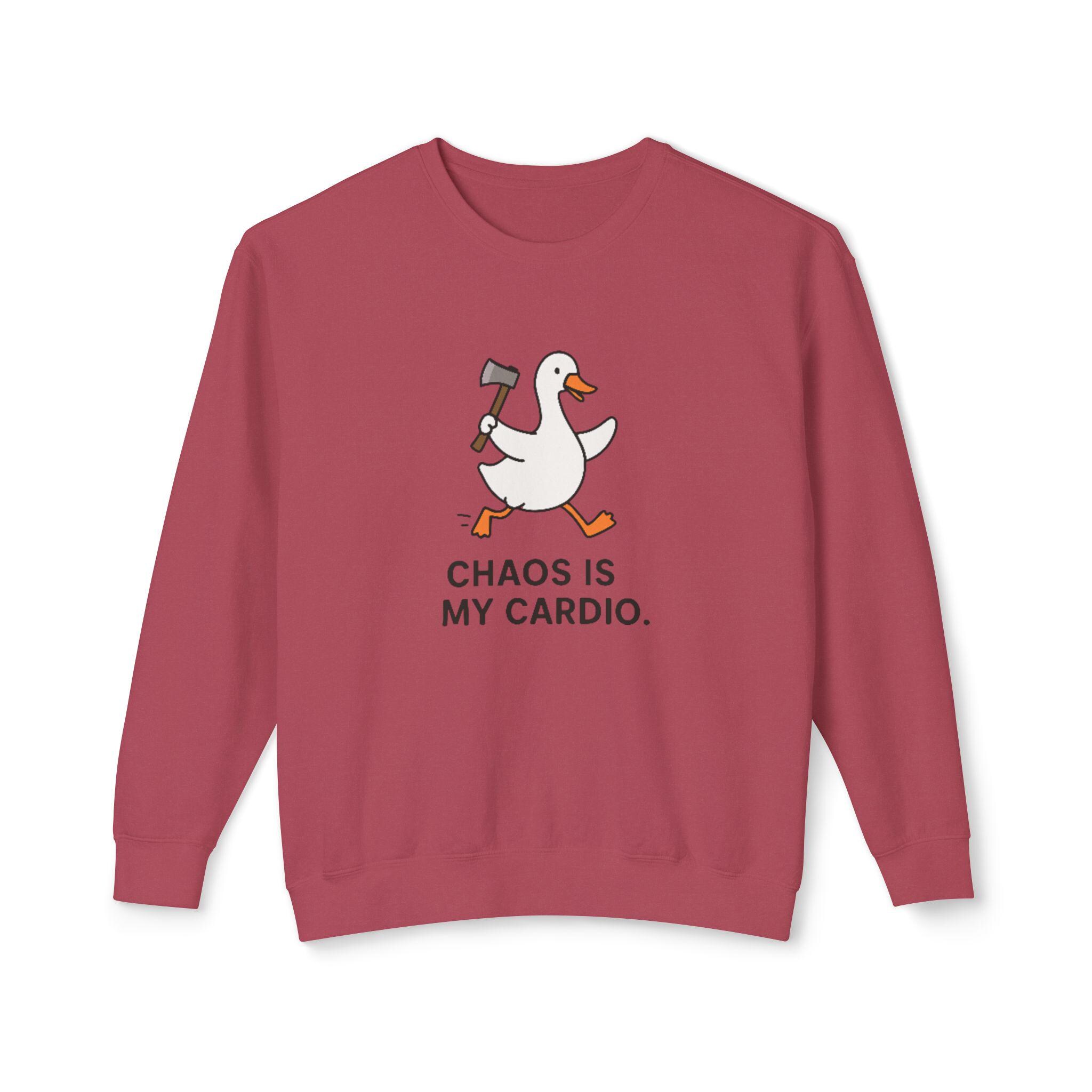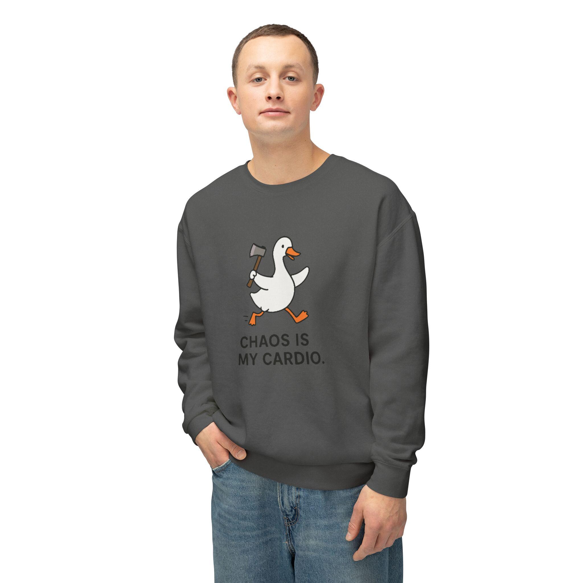 Bring playful chaos wherever you go with this “Chaos Is My Cardio” Goose Sweatshirt — a funny, mischievous unisex crewneck perfect for anyone who thrives on a little mayhem. Featuring a bold graphic of a chaotic goose on the move, this cozy pullover adds instant humor and personality to any casual outfit.