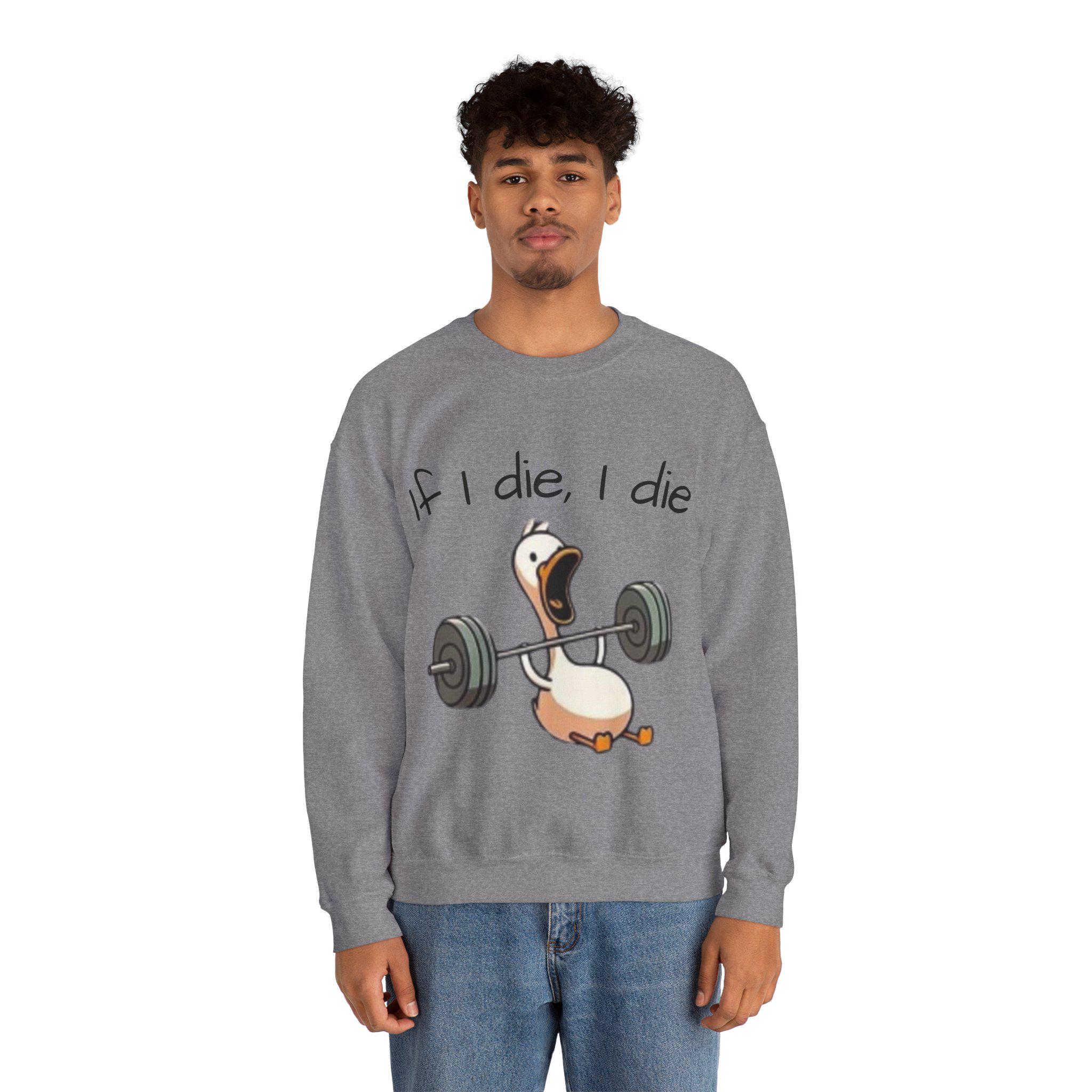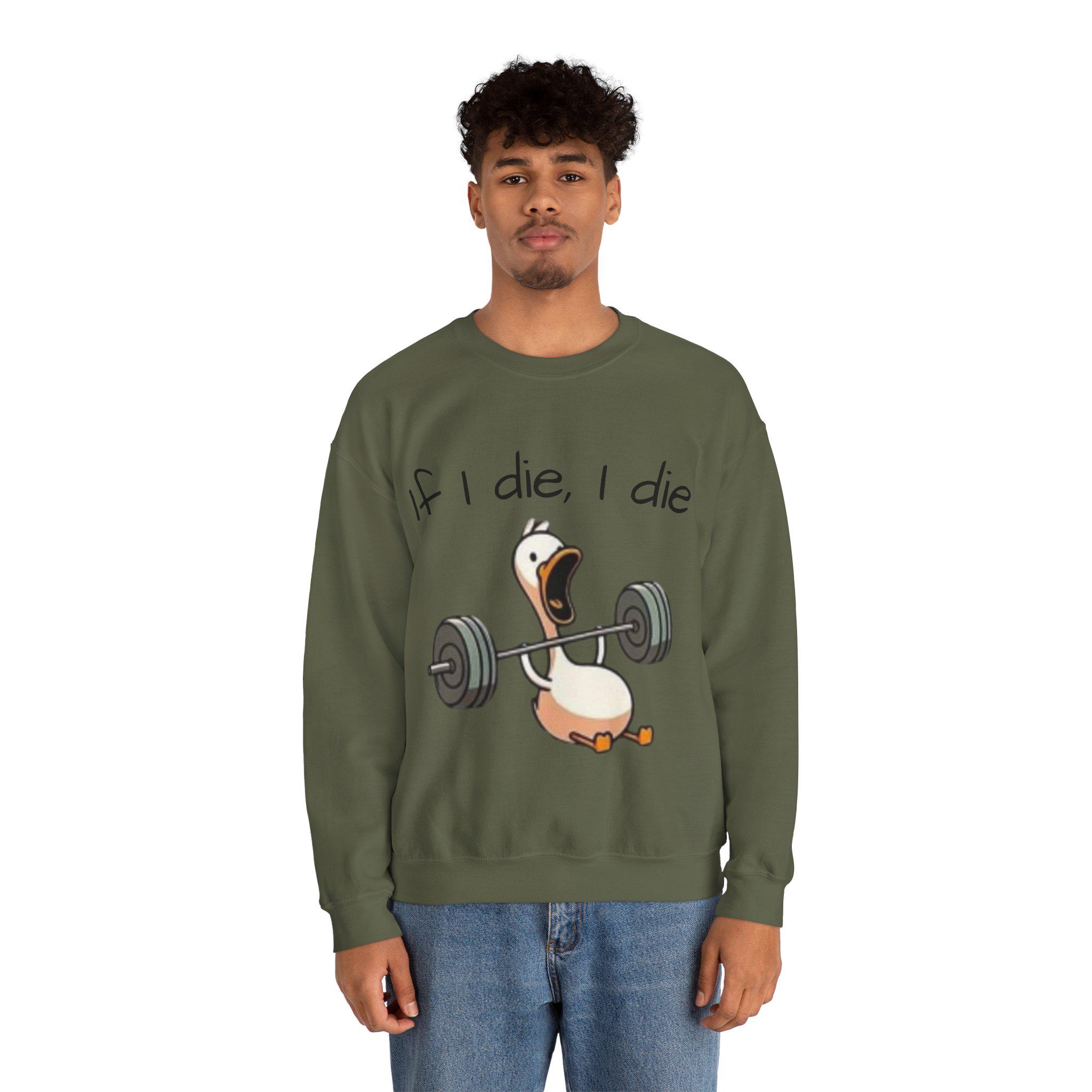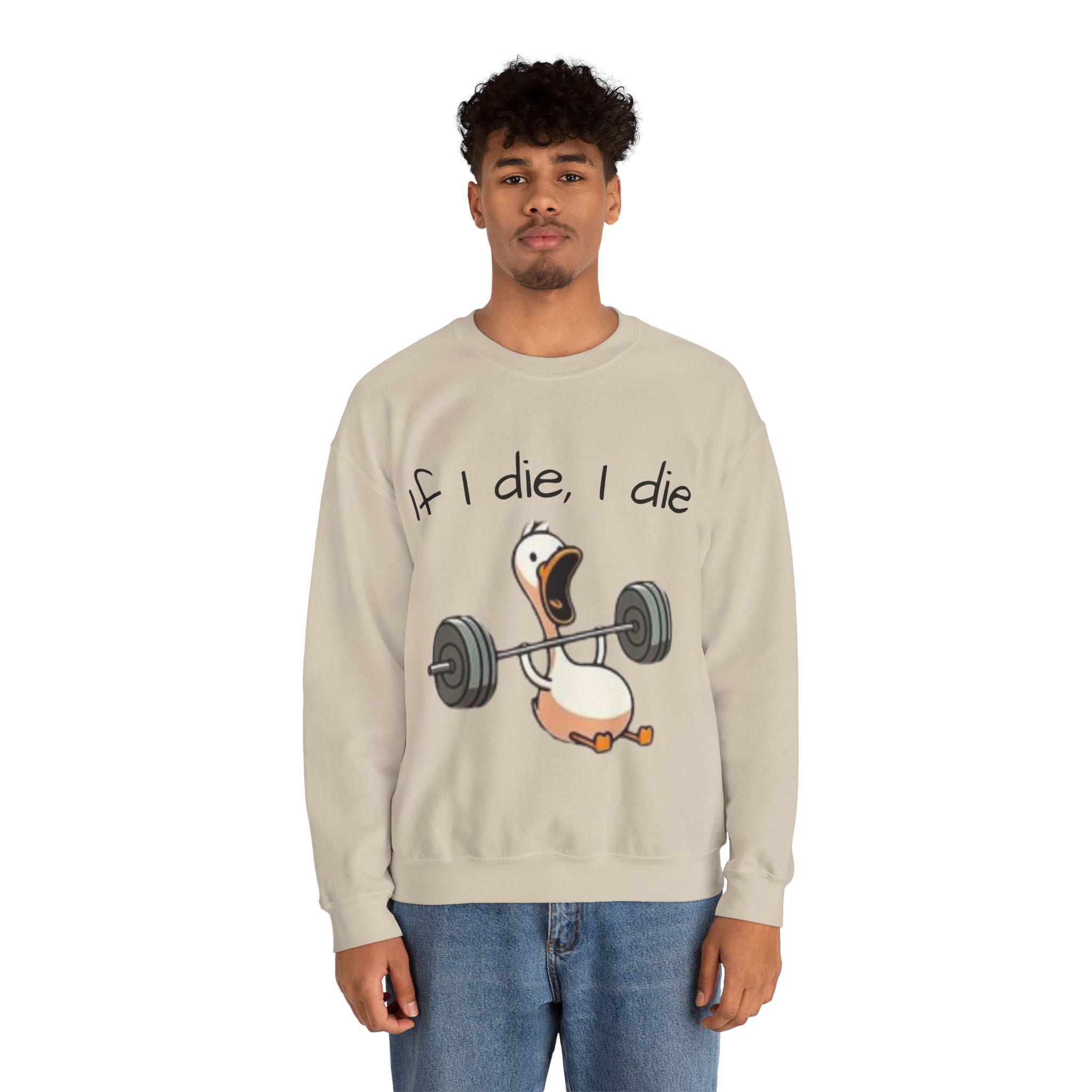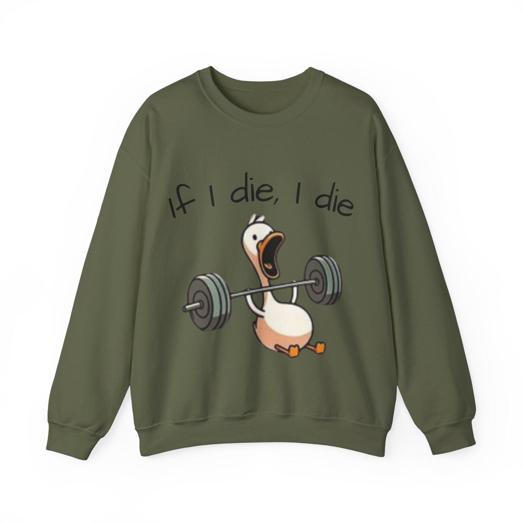 Step into the gym (or your lounge) with confidence and a grin – our “If I Die, I Die” duck lifting weights crewneck is for the fitness-fan who doesn’t take life too seriously. Whether you’re smashing that last rep or just grabbing your coffee, this pullover is your everyday reminder to lift heavy, laugh harder and live boldly.