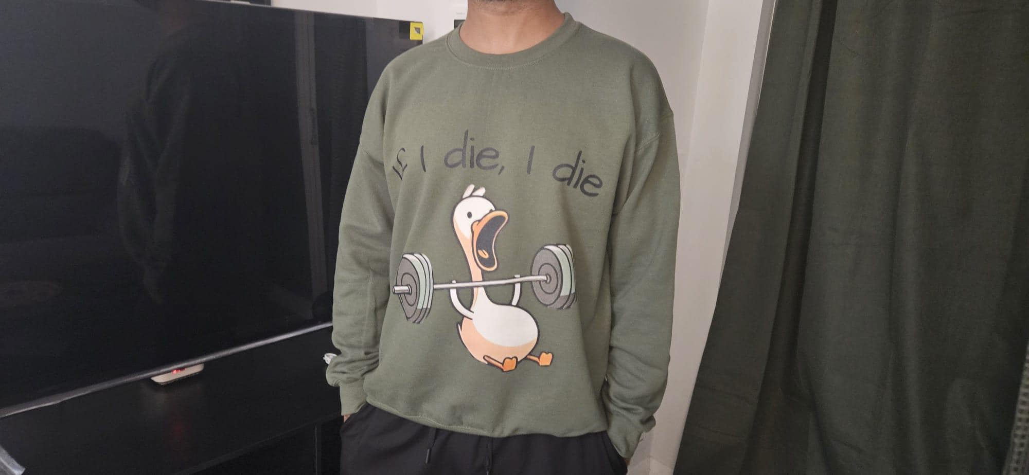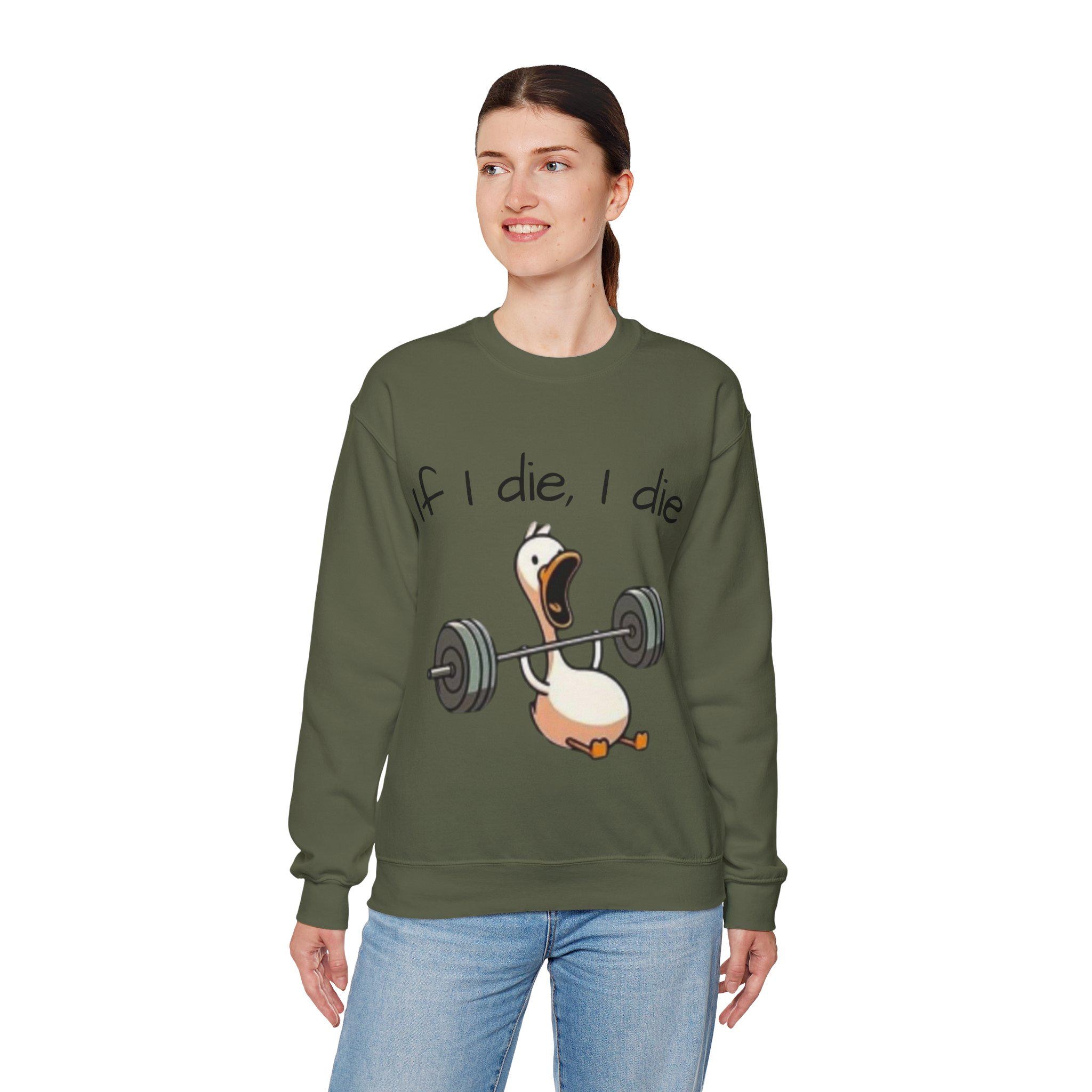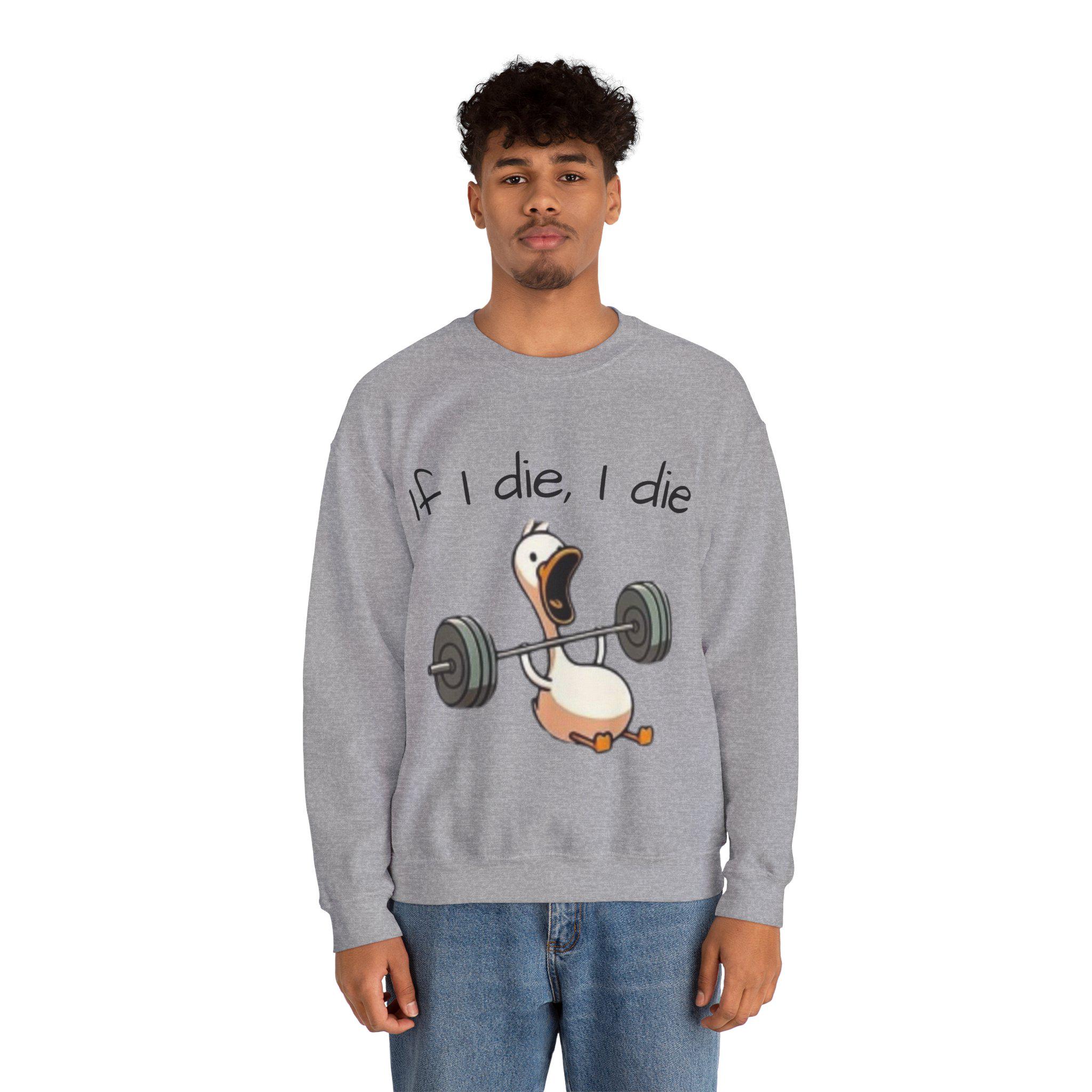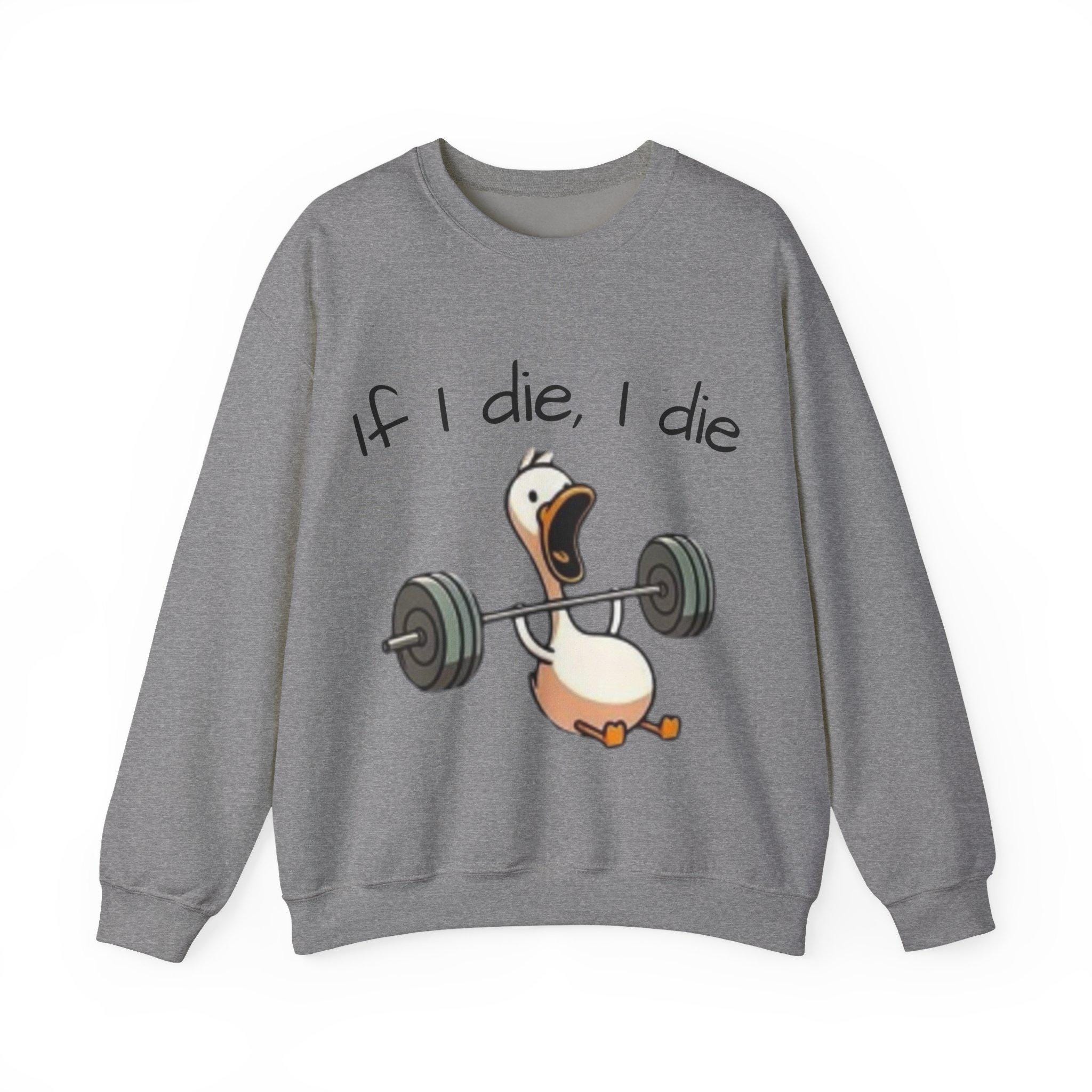 Step into the gym (or your lounge) with confidence and a grin – our “If I Die, I Die” duck lifting weights crewneck is for the fitness-fan who doesn’t take life too seriously. Whether you’re smashing that last rep or just grabbing your coffee, this pullover is your everyday reminder to lift heavy, laugh harder and live boldly.