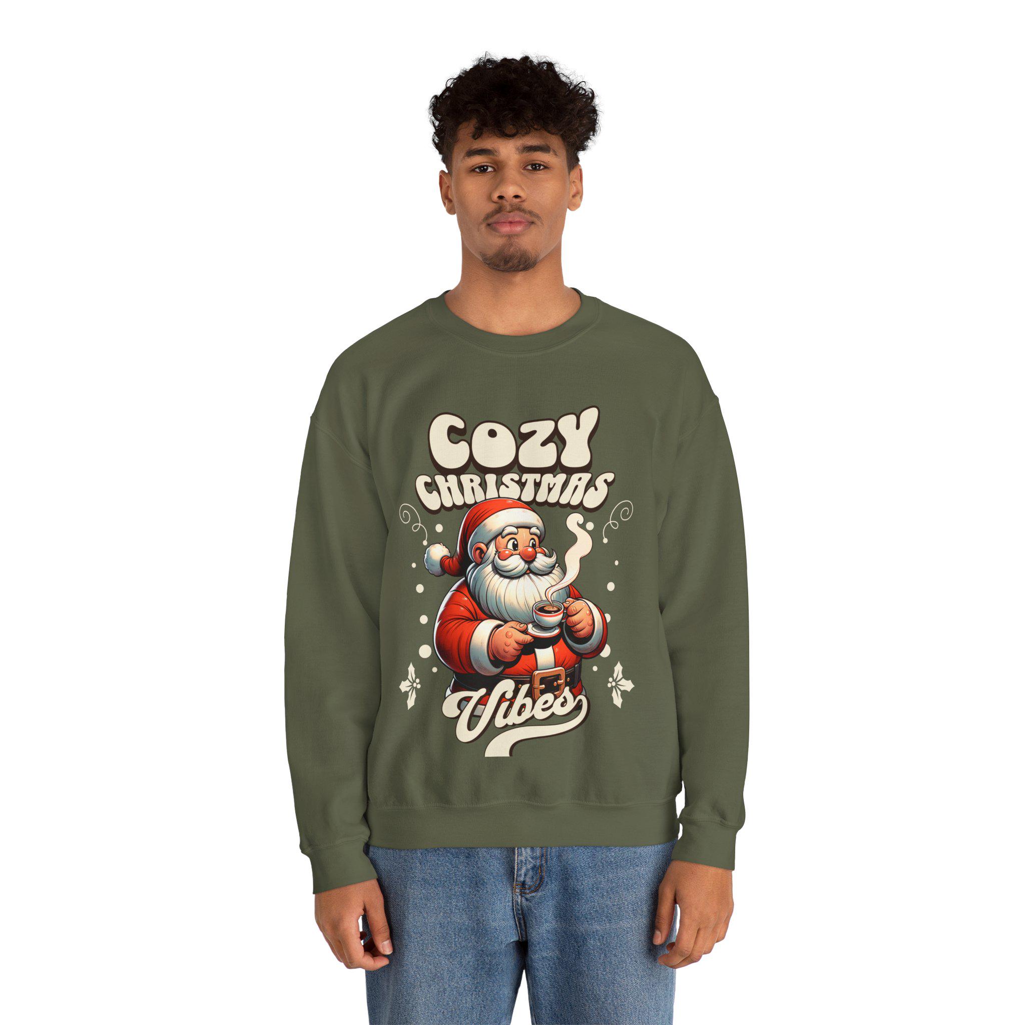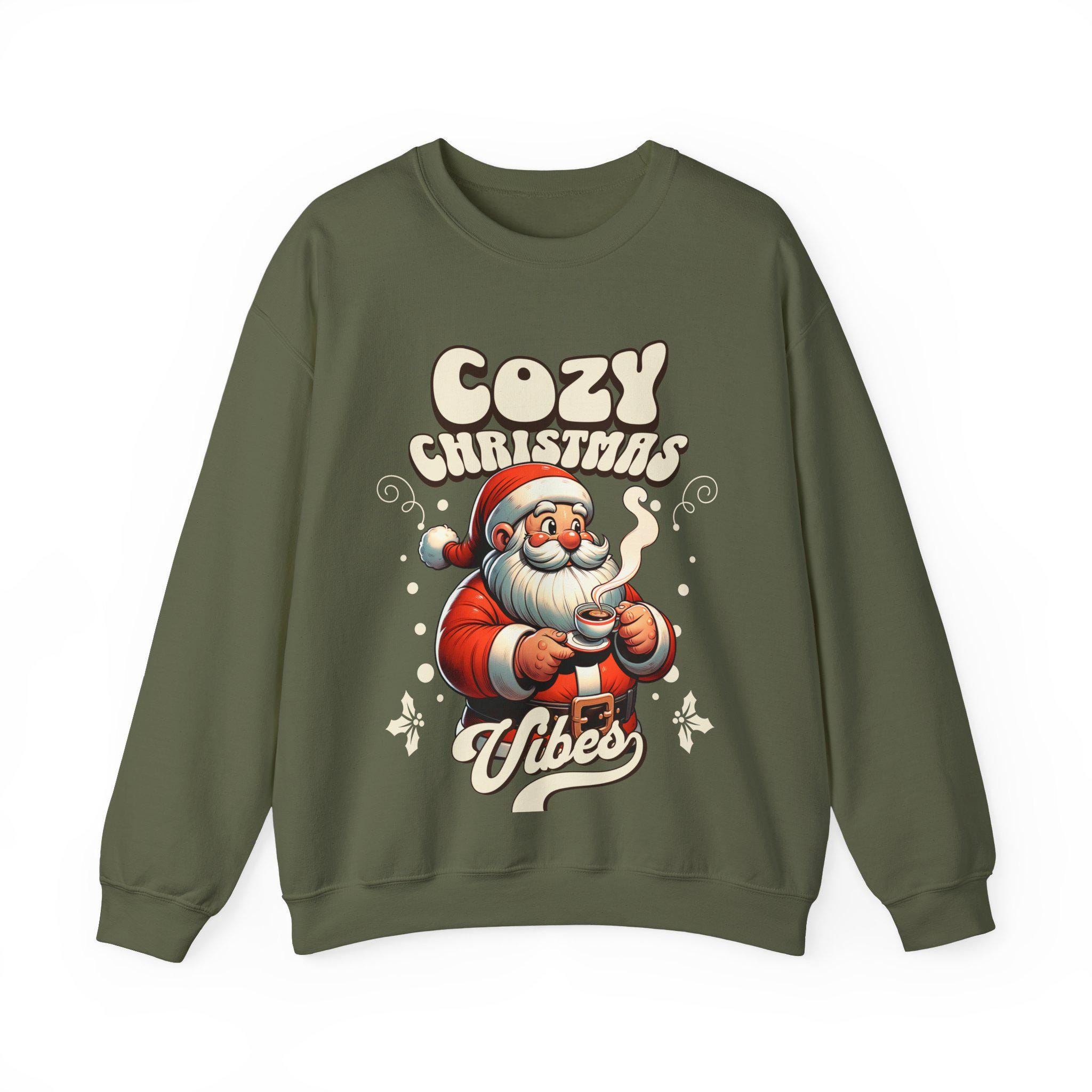 This cozy crewneck sweatshirt wraps the holidays in warm, nostalgic comfort. A vintage-style Santa clutching a steaming mug sits front and center under playful lettering that reads “Cozy Christmas Vibes,” creating a soft, fireside mood. The medium-heavy 50/50 cotton-poly blend and classic crew silhouette make it easy to layer over shirts or under coats for chilly evenings. Subtle olive tones let the artwork pop while staying wearable with jeans, leggings, or pajama bottoms. Wear it for low-key gatherings, holiday movie nights, or slow mornings by the tree — it feels like a warm mug and a favorite blanket combined.