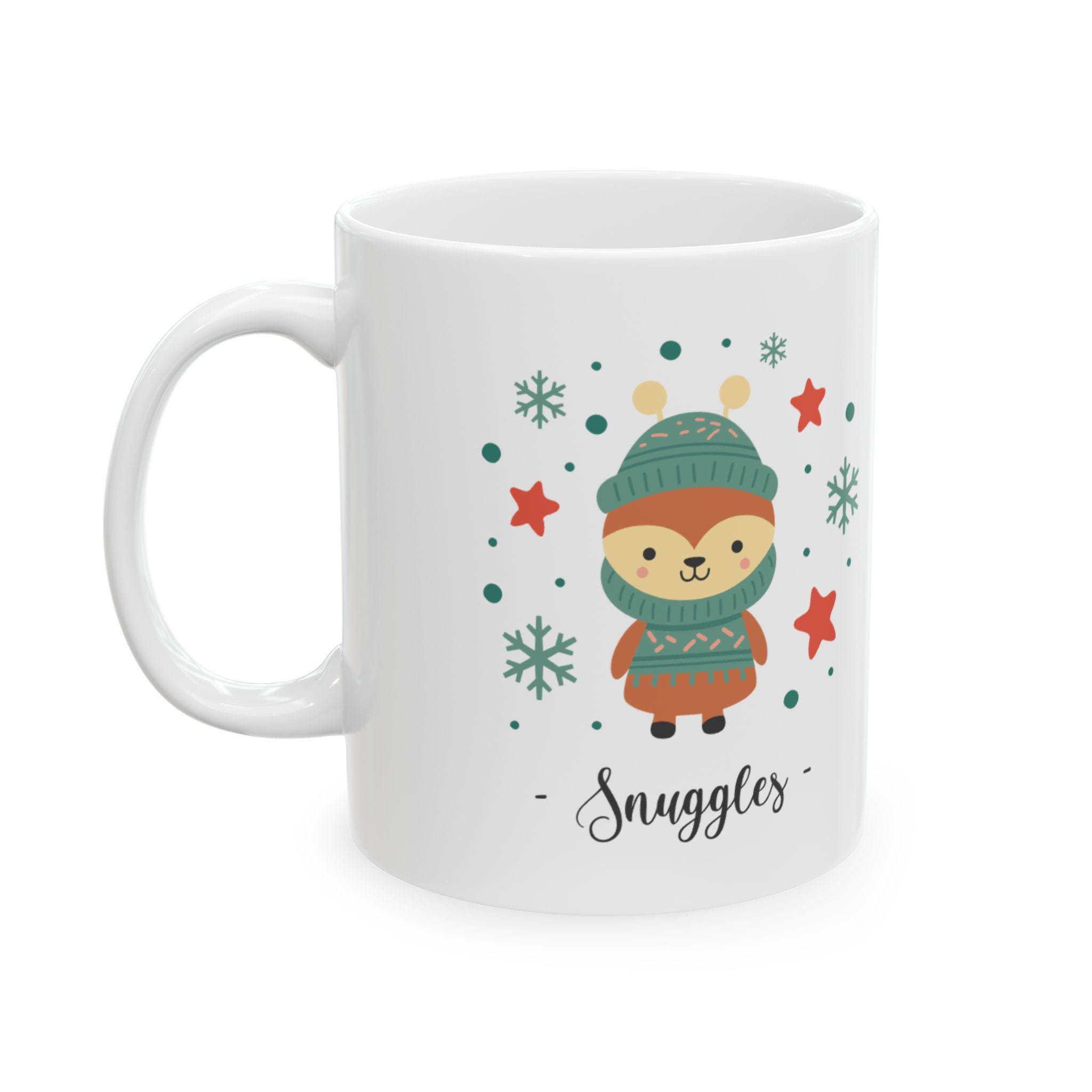Warmth in a tiny package. This glossy ceramic mug wraps a sweet, hand-drawn winter character in bright, cheerful colors that pop against a clean white background. It feels light in your hands but steady enough for everyday sipping—coffee, cocoa, or a late-night tea. Snowflakes and scattered stars frame the illustration, giving a cozy, festive vibe that reads playful rather than fussy. Slip it into a morning routine to add a quiet, joyful moment to chilly days or bring it out with friends during a low-key holiday gathering. It’s made to be used, loved, and put straight in the microwave or dishwasher without fuss.