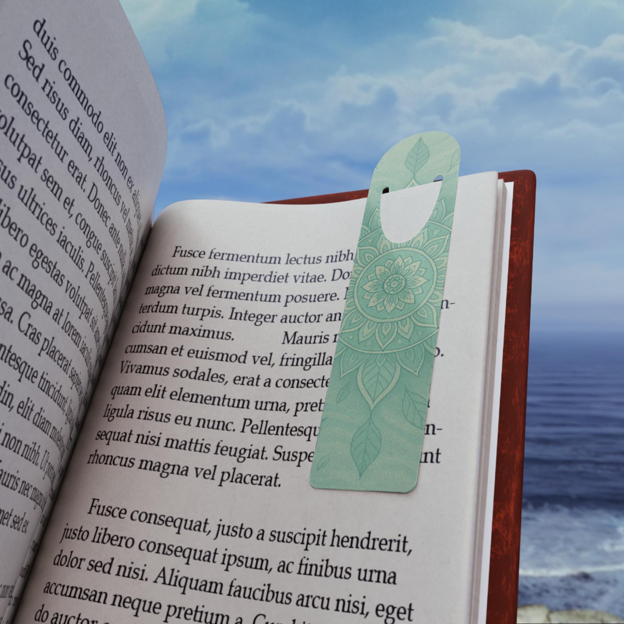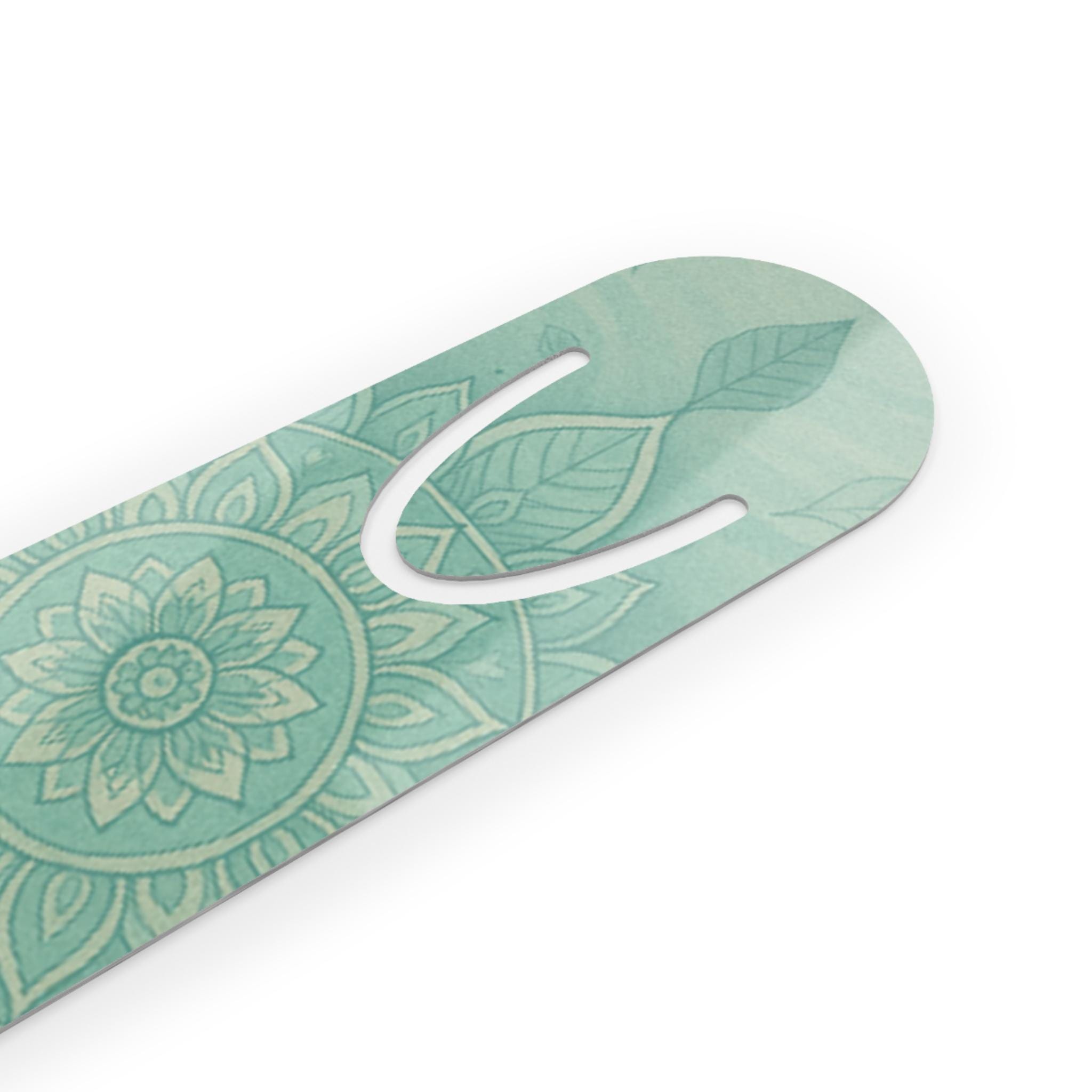 Slip into quiet reading moments with this slim aluminum bookmark, featuring a soft mint mandala that settles over your page like a deep breath. The rounded top and gentle U-shaped slot hug a sheet without tearing, while the lightweight metal base keeps it beautifully flat between chapters. It’s designed for people who savor slow reads and mindful breaks—tuck it into your current paperback, leave it peeking from a bedside stack, or slide it into a journal as a calm divider. The crisp, single-sided print lets the artwork sing in bright, lasting color while the brushed aluminum back gives a refined touch that ages gracefully. Thoughtful, unobtrusive, and made to travel from café to couch with you.