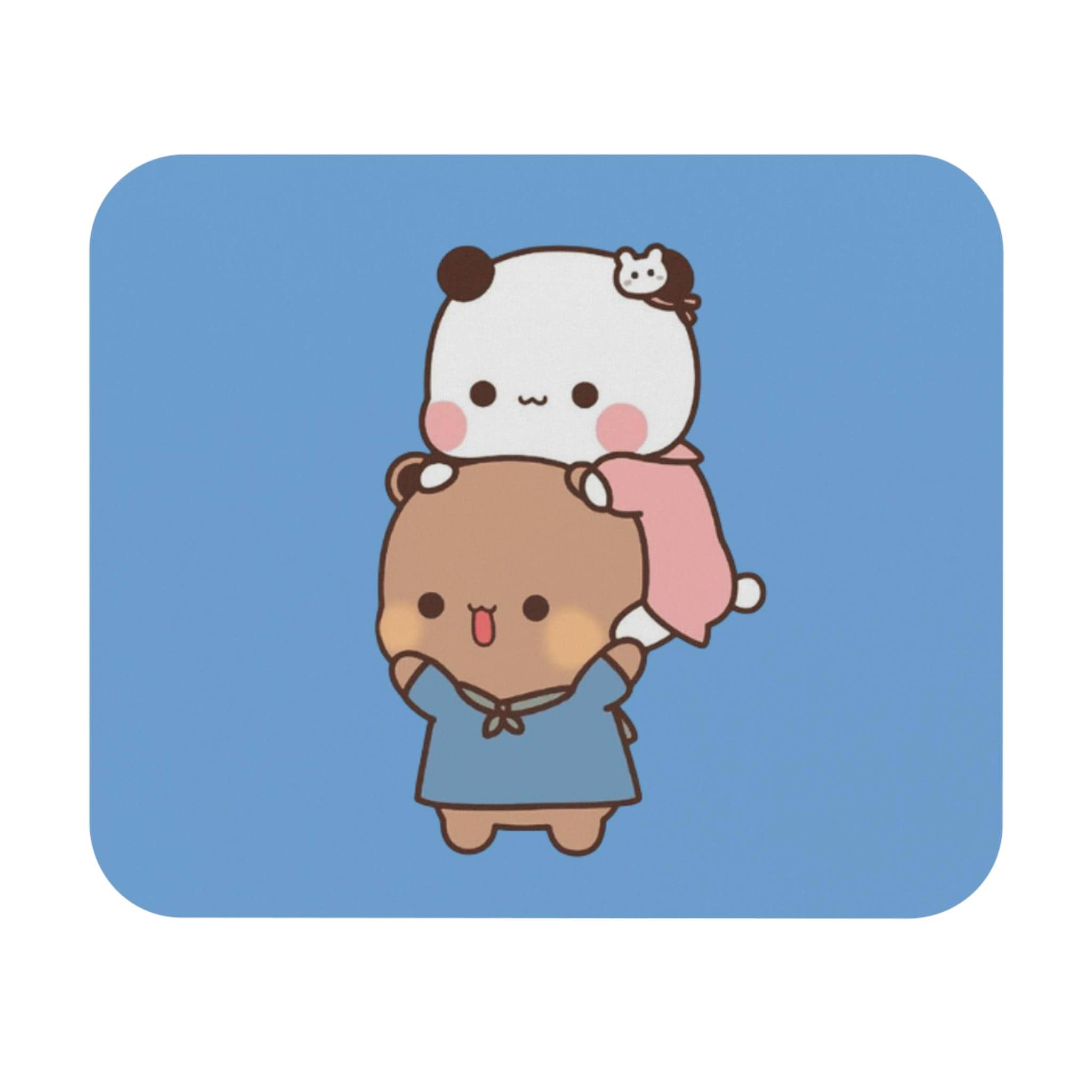A soft, smooth mouse pad printed with a sweet, playful illustration of two chibi characters stacked in a gentle piggyback pose. The bright blue background lets the pastel tones and rounded shapes pop, bringing a calm, cheerful vibe to any desk. Thin yet cushioned, the pad offers effortless mouse movement and a steady rubber base that keeps it from slipping during work, study, or gaming sessions. It’s an unobtrusive desk companion that adds personality without crowding your workspace — the kind of small, everyday comfort that makes long hours at a screen feel friendlier.