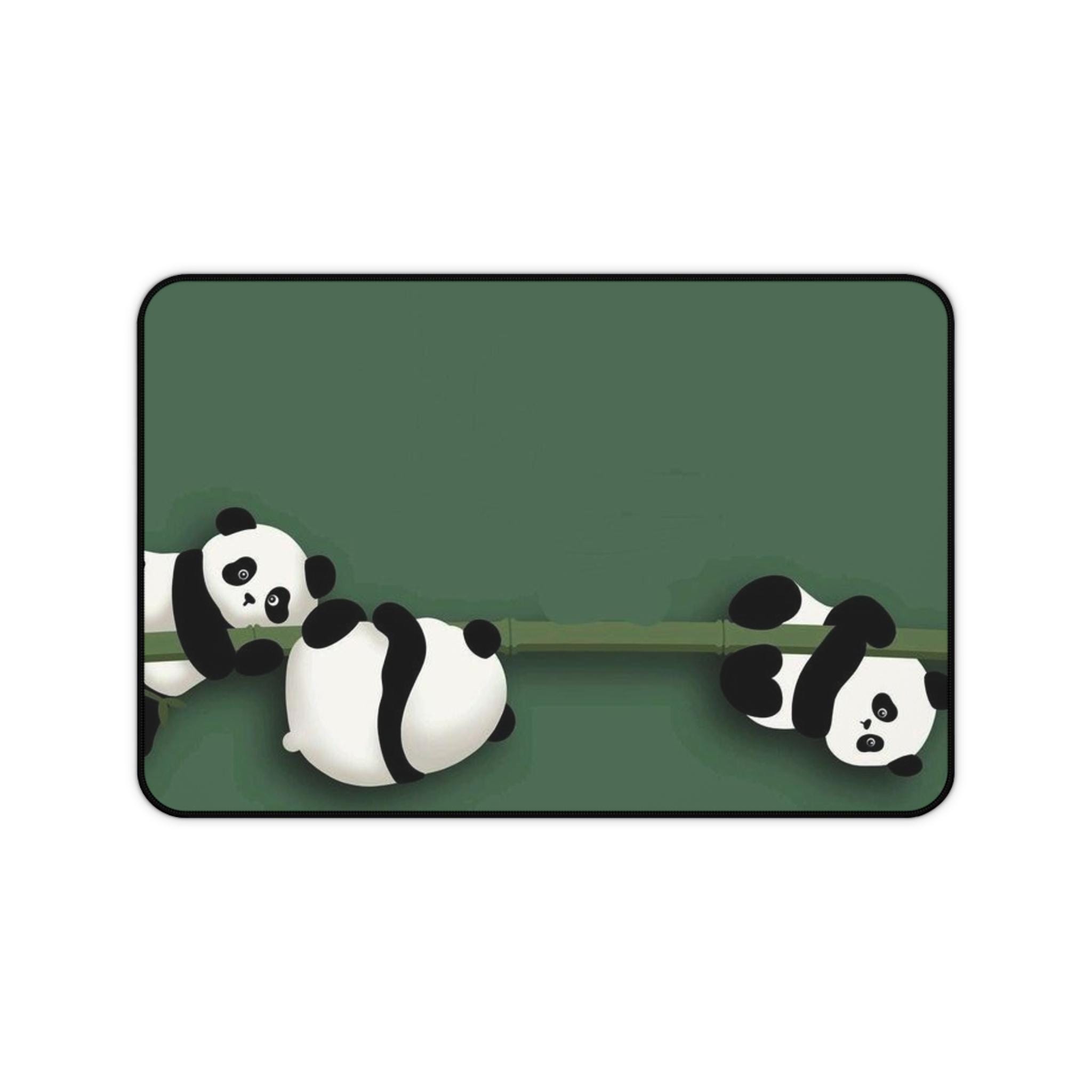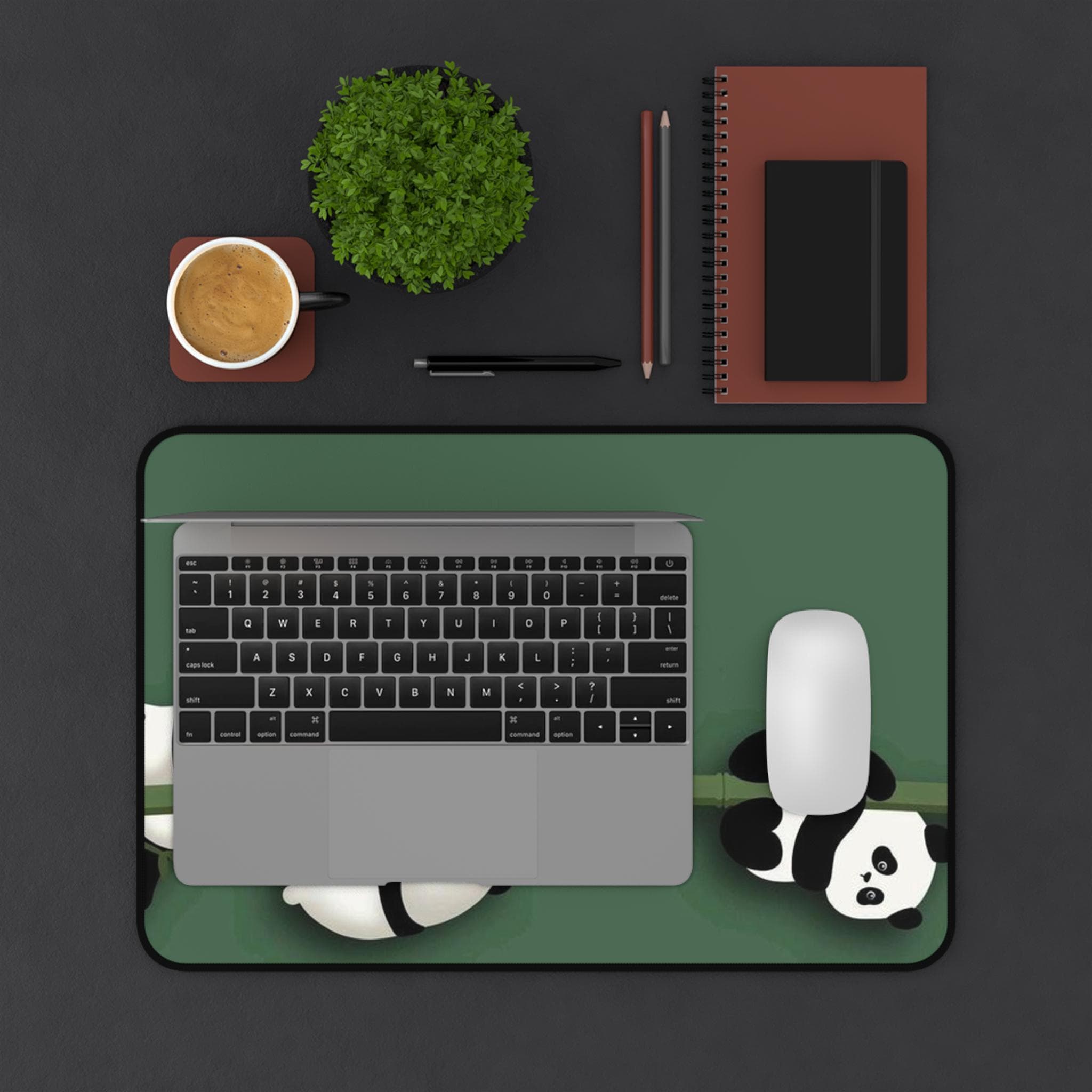 Spread a little calm and charm across your workspace with this panda-themed desk mat. Soft, neoprene surface and crisp, vibrant printing create a soothing visual anchor while you type, sketch, or sip your tea. The deep green background and playful pandas lounging along a bamboo stalk bring a gentle, whimsical touch that eases busy days and invites a quieter focus. Hemmed edges and a grippy backing keep the mat looking neat and steady through daily use. Available in three sizes to fit tiny nooks or wide desks — this mat becomes the quiet companion for creative sessions, late-night study, or mindful breaks between tasks.