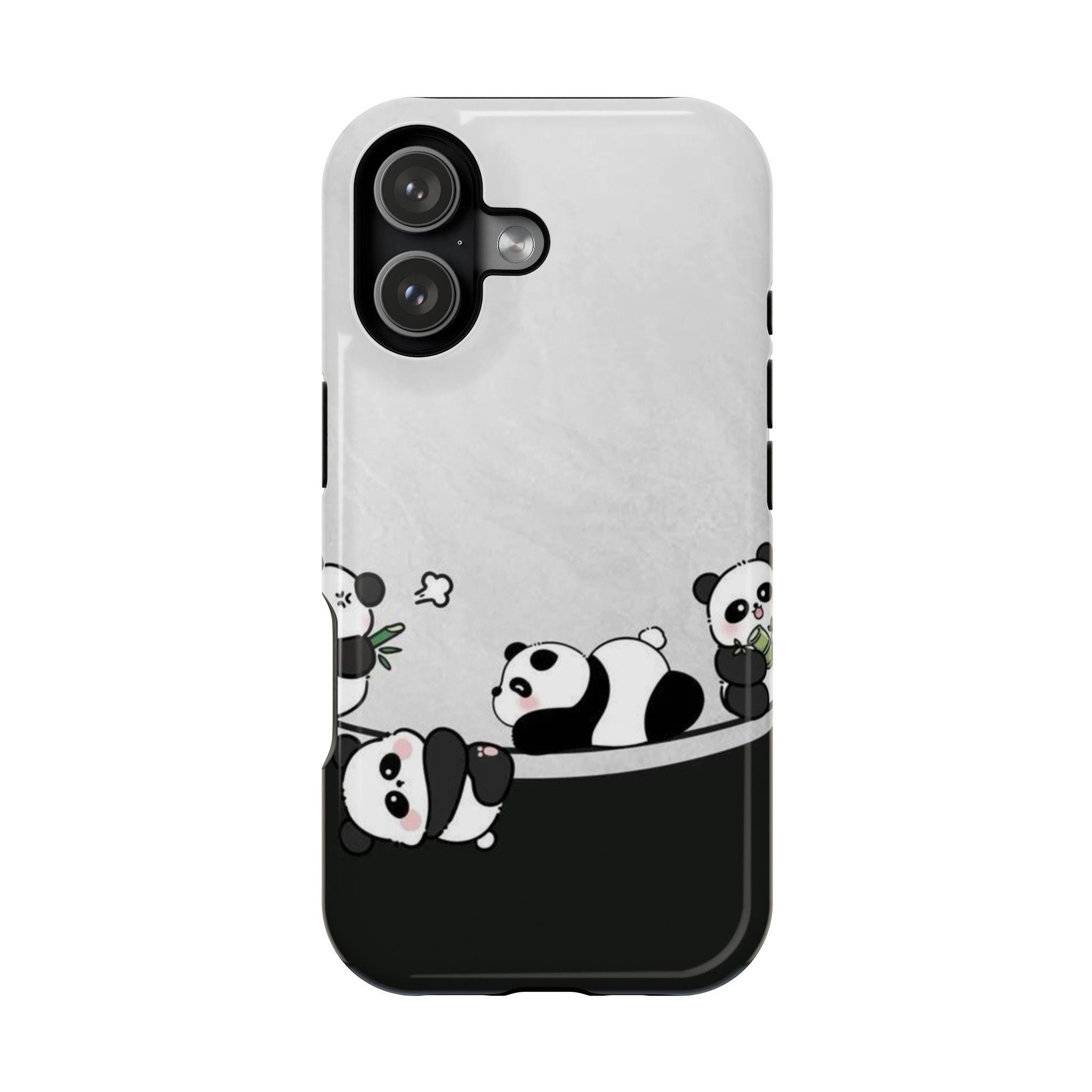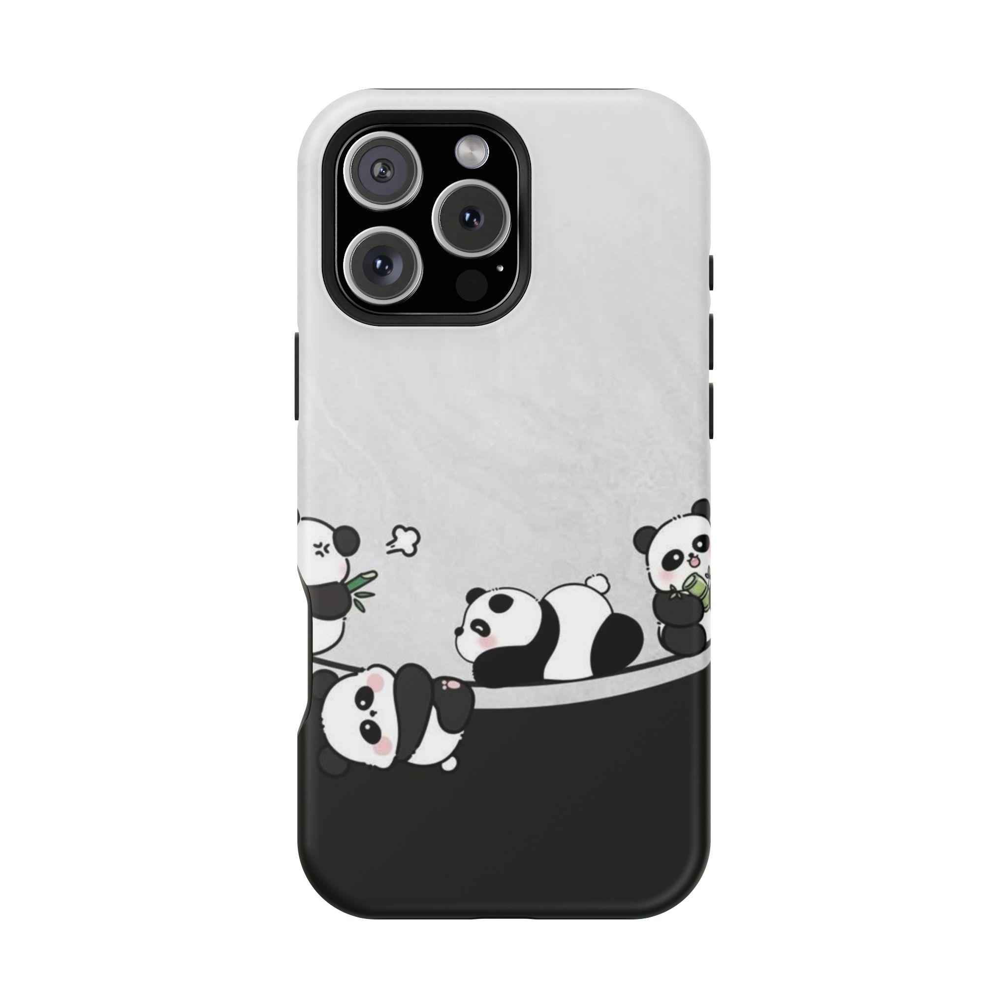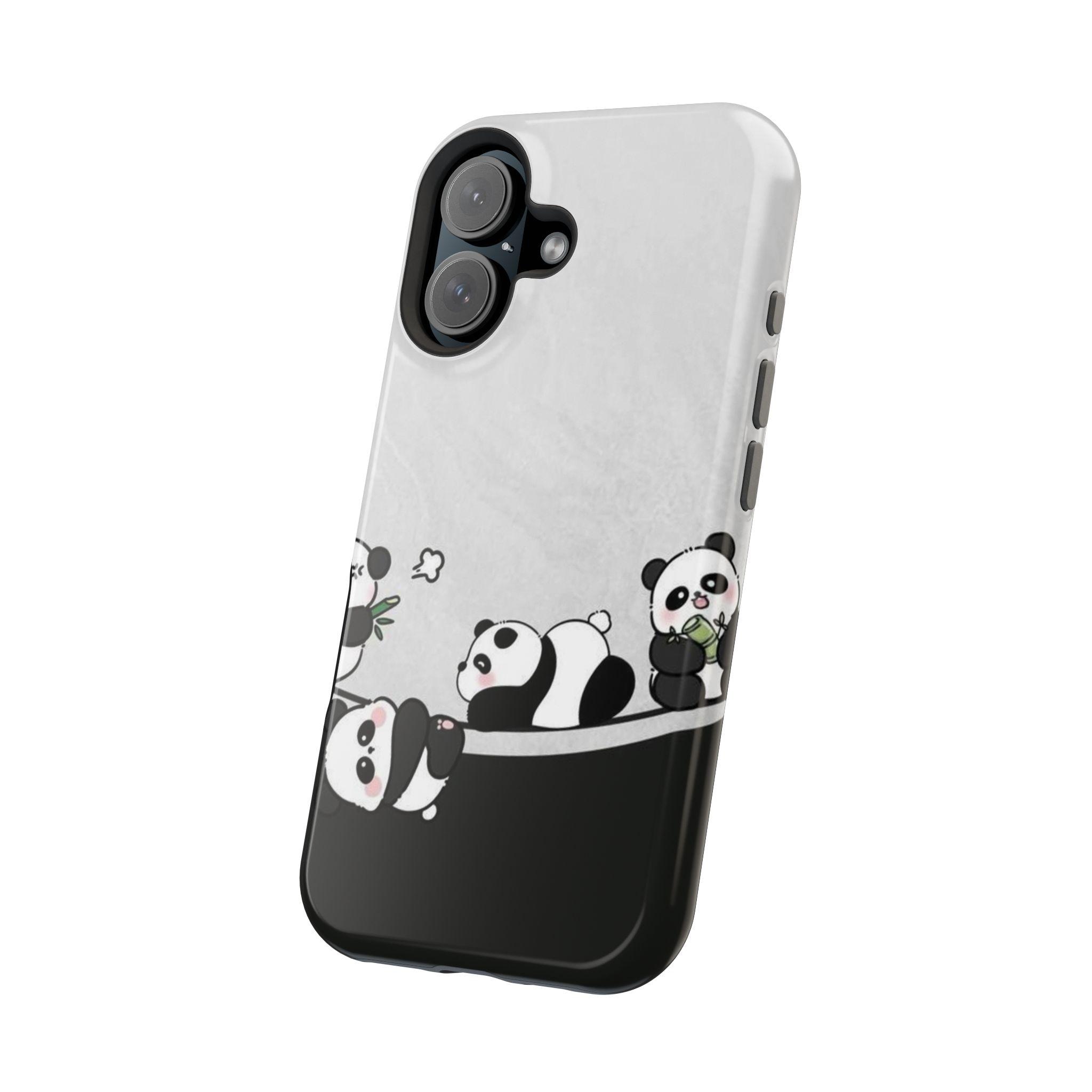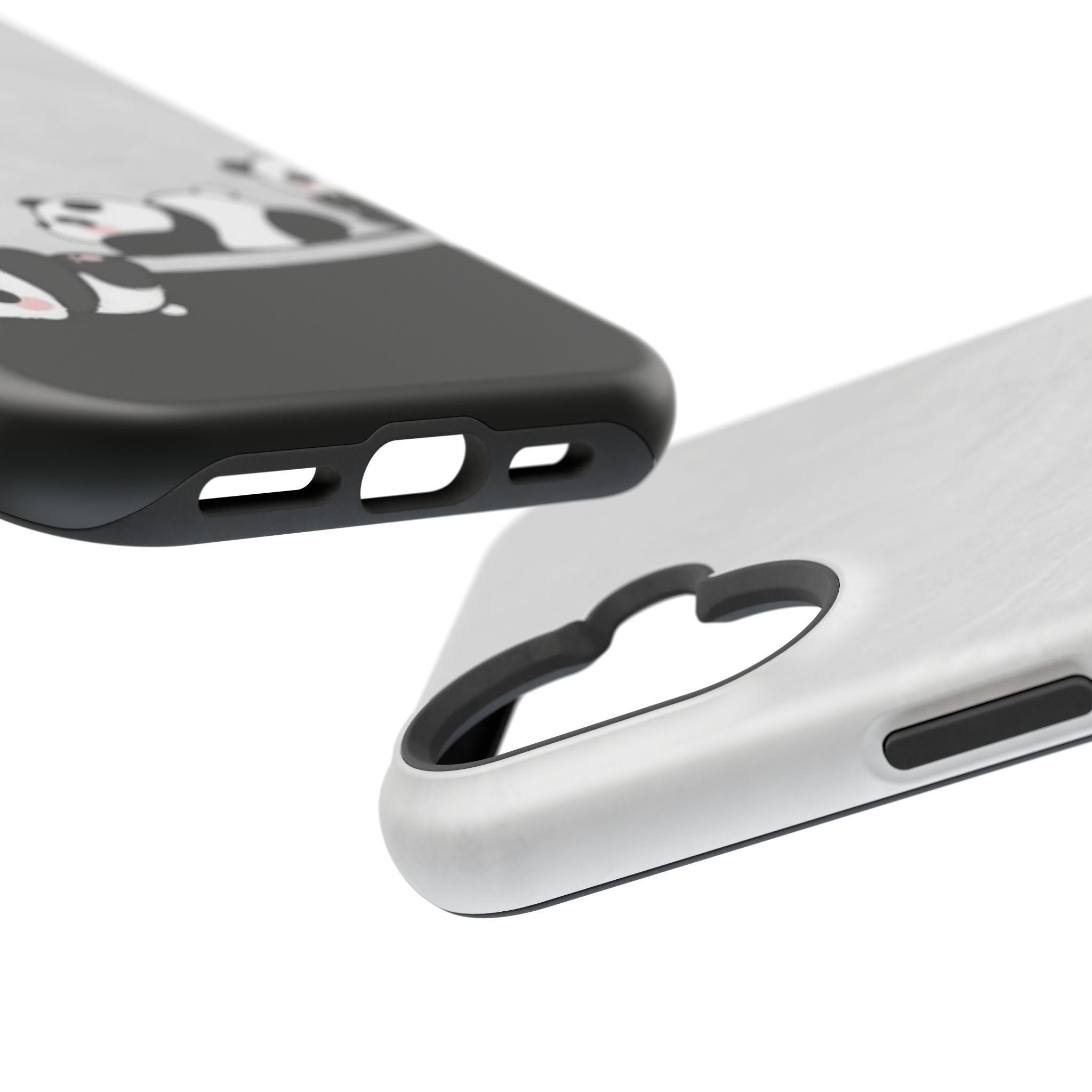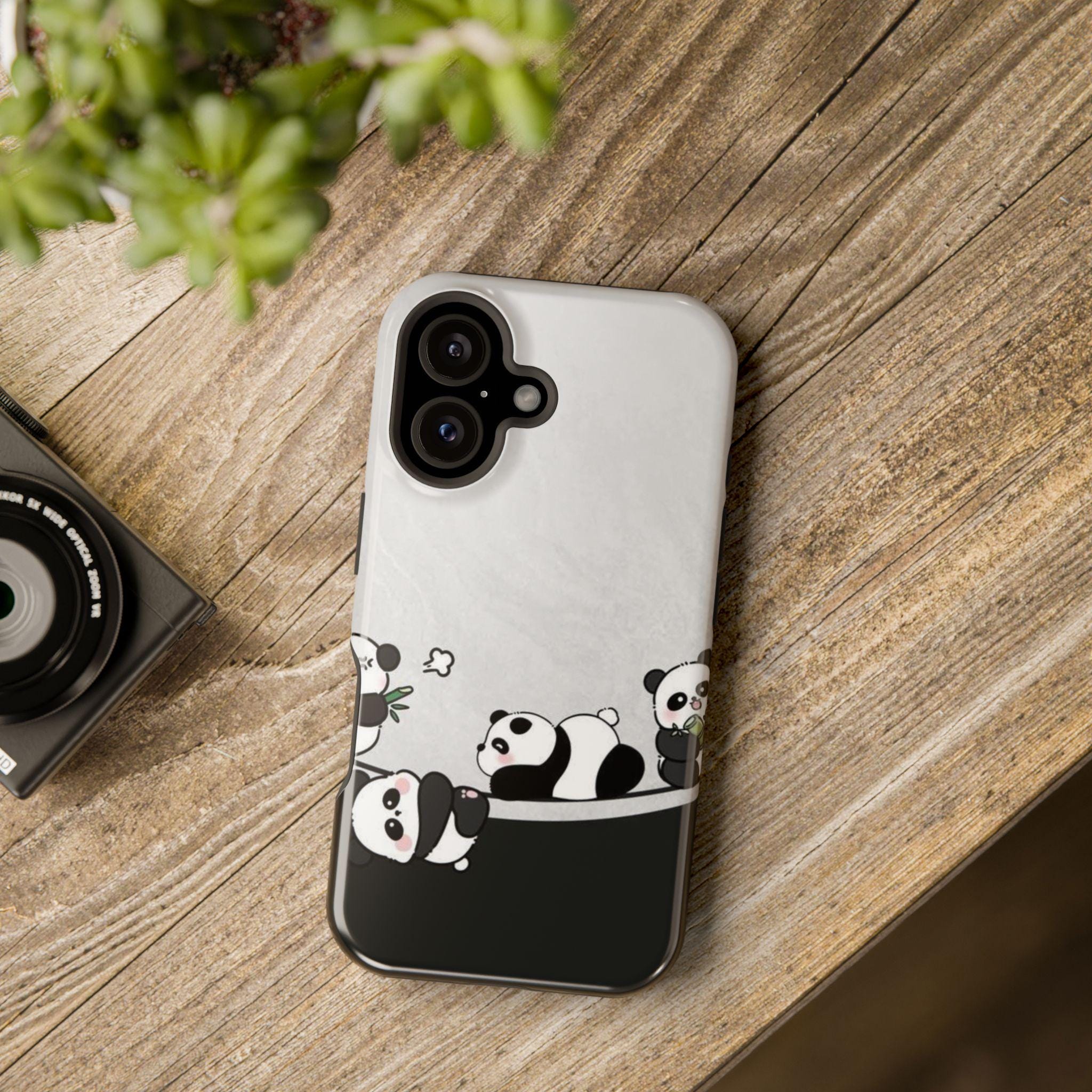A cheerful protective phone case that brings a playful panda scene to your everyday carry. The slim, dual-layer shell pairs a rigid polycarbonate exterior with a cushioned TPU liner, so the little pandas can tumble and nap while your device stays safe from everyday bumps and scratches. Choose glossy or matte finishes for a crisp, full-wrap print at high resolution — the soft gray background and black foreground let the illustrated pandas pop without overpowering your style. Built-in magnets add MagSafe® compatibility, and the case fits recent iPhone models (including iPhone 17 series) while keeping ports and cameras accessible. This case fits naturally into days spent commuting, snacking at a café, or relaxing at home — a small, joyful detail that brightens routines.