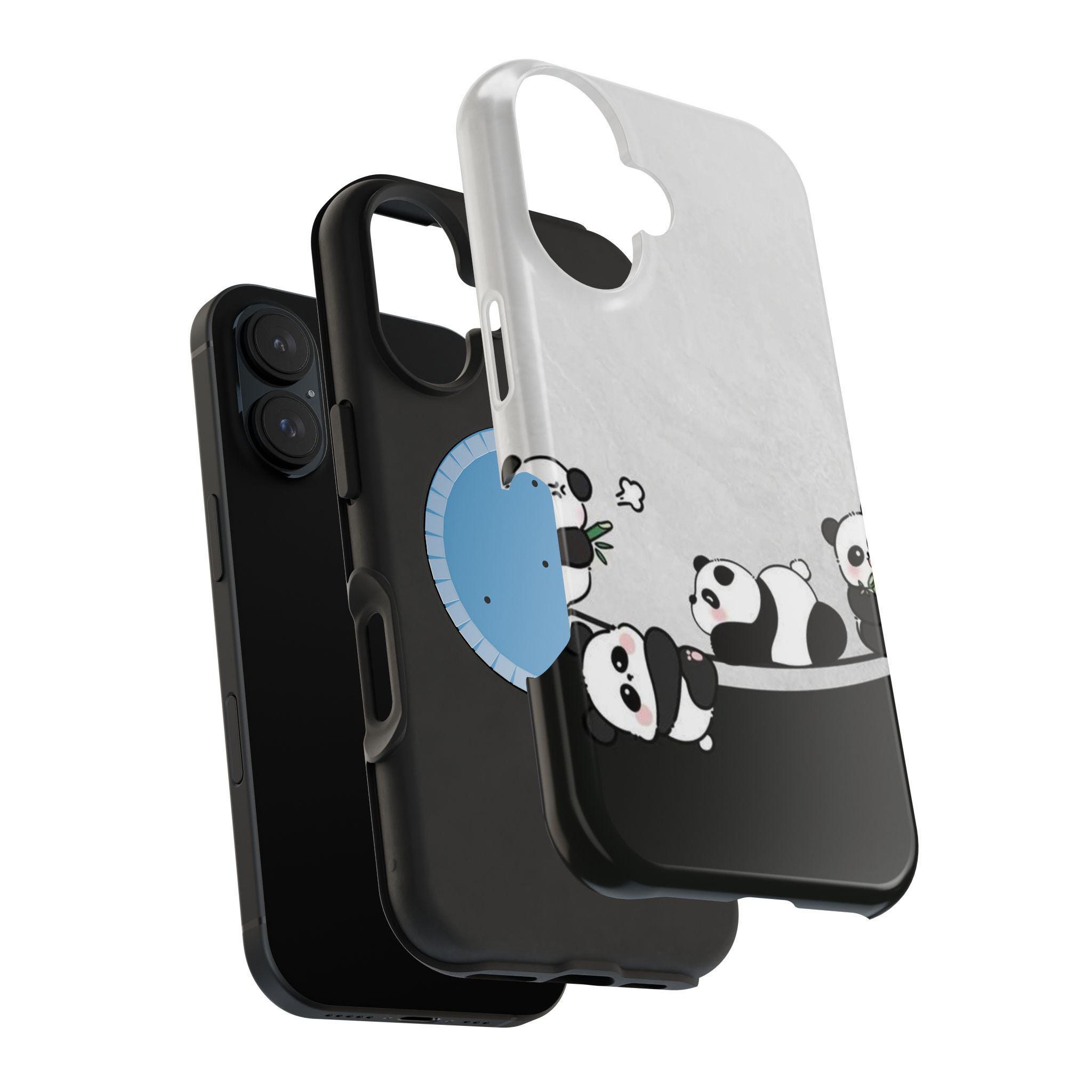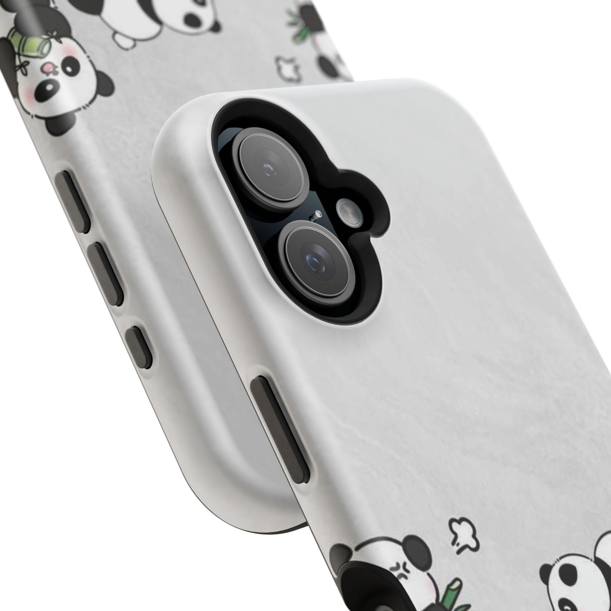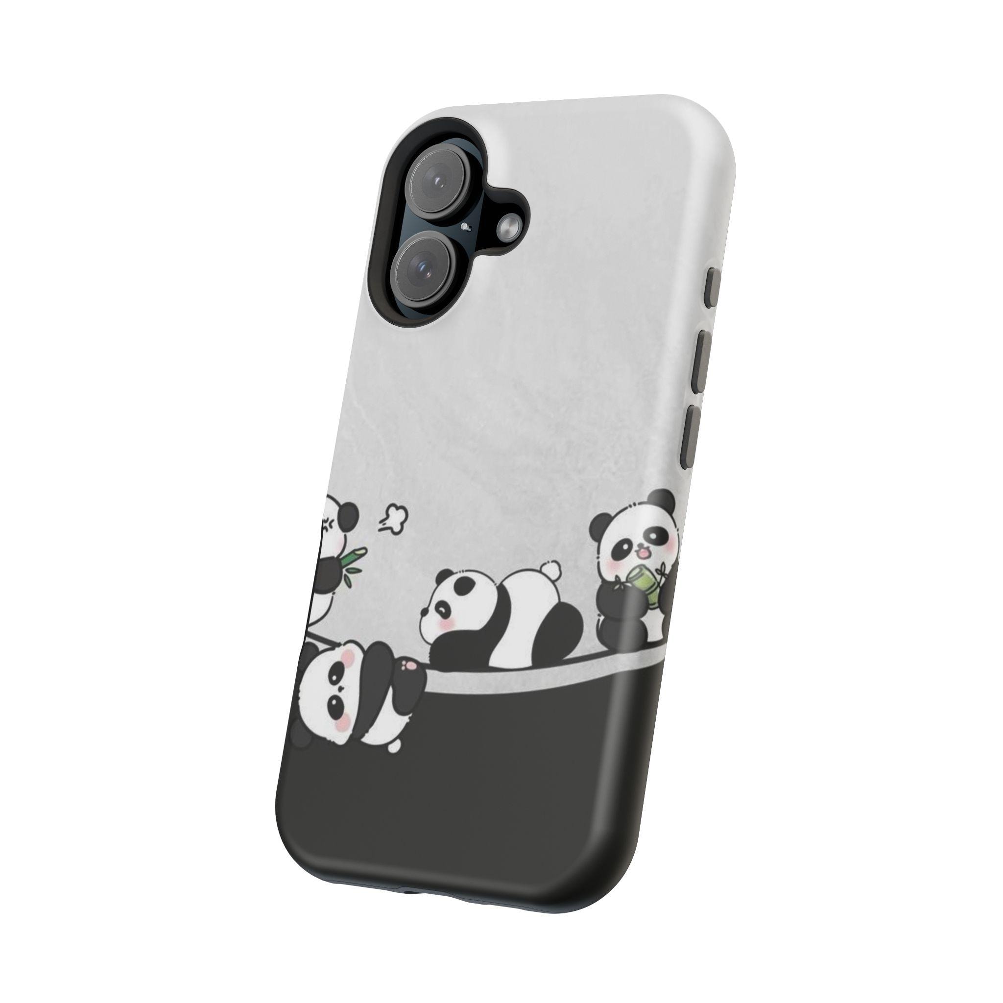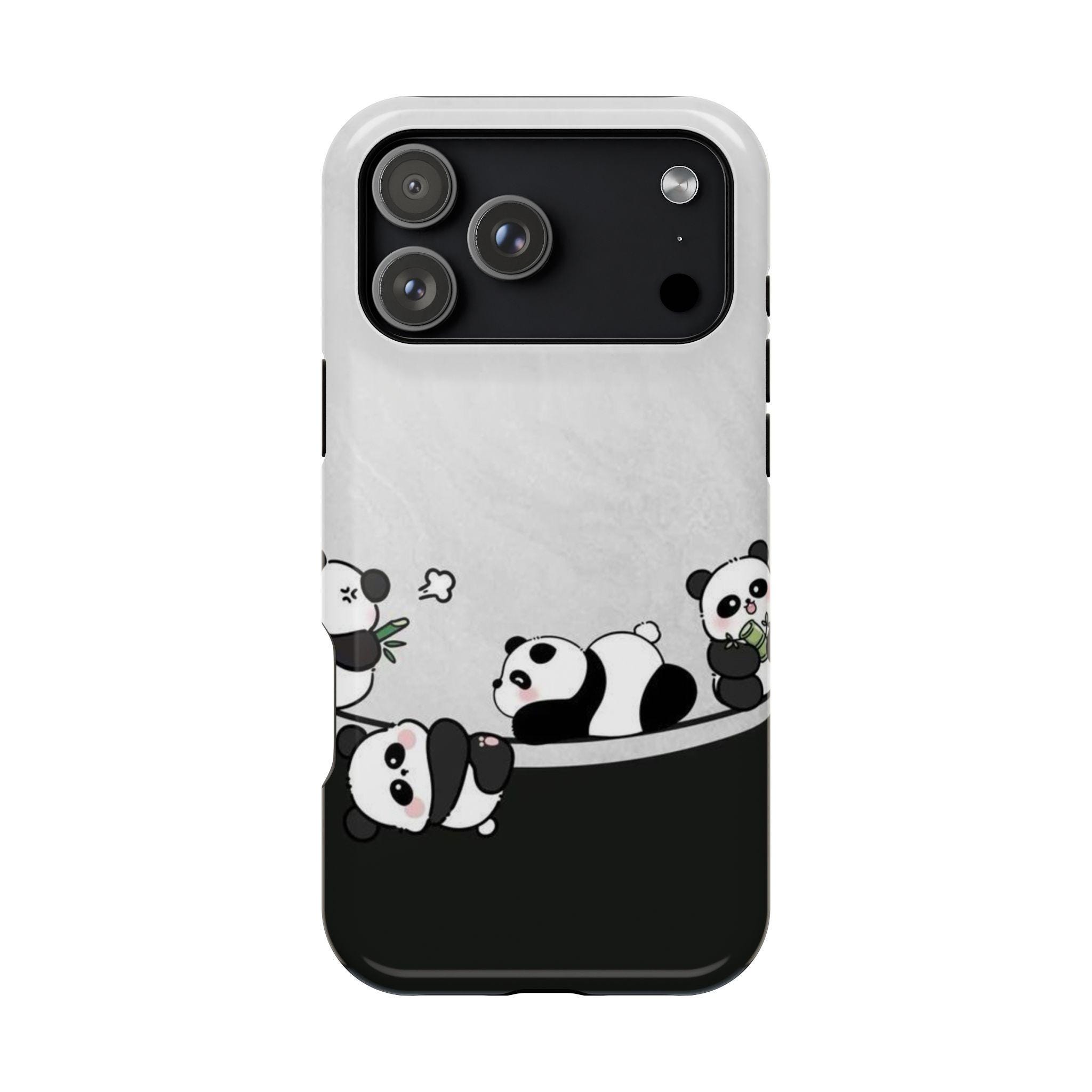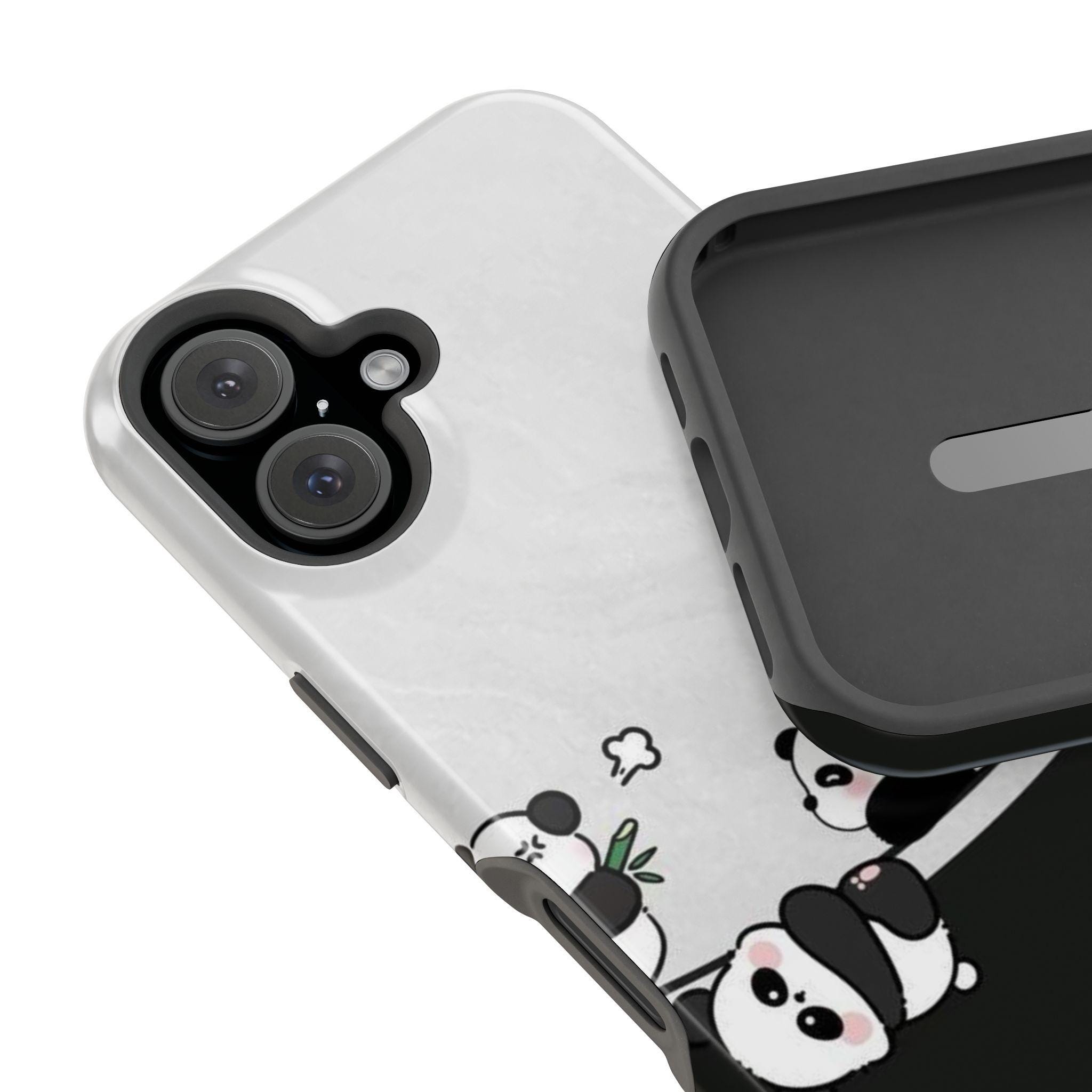 A cheerful protective phone case that brings a playful panda scene to your everyday carry. The slim, dual-layer shell pairs a rigid polycarbonate exterior with a cushioned TPU liner, so the little pandas can tumble and nap while your device stays safe from everyday bumps and scratches. Choose glossy or matte finishes for a crisp, full-wrap print at high resolution — the soft gray background and black foreground let the illustrated pandas pop without overpowering your style. Built-in magnets add MagSafe® compatibility, and the case fits recent iPhone models (including iPhone 17 series) while keeping ports and cameras accessible. This case fits naturally into days spent commuting, snacking at a café, or relaxing at home — a small, joyful detail that brightens routines.