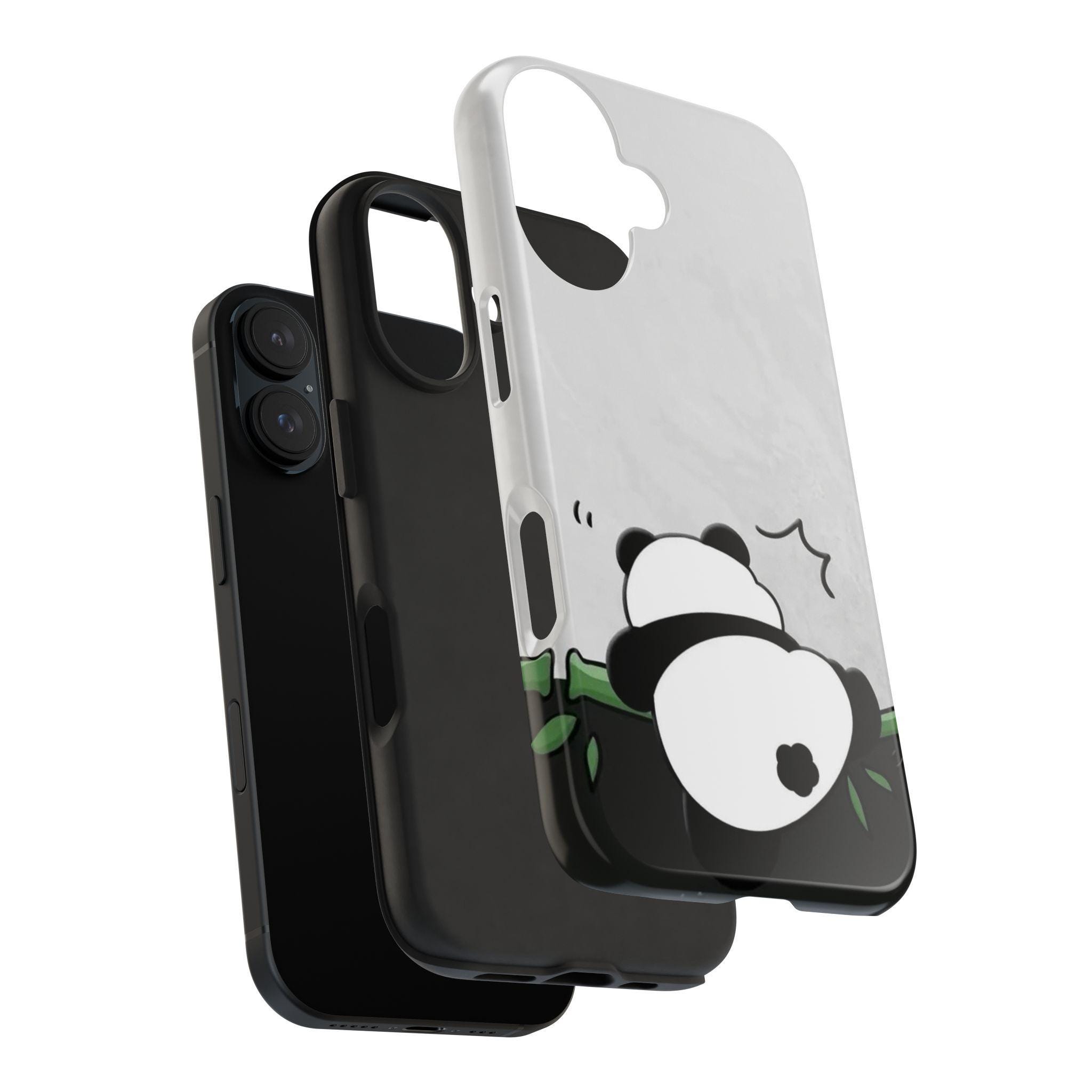 Lightweight, protective, and playful — this phone case wraps your device in durable Lexan polycarbonate with a soft TPU liner for shock absorption. The glossy finish makes the panda illustration pop against a subtle marble-like backdrop, while the lay-flat bezel keeps the screen lifted from scratches. UV protection preserves colors through daily use outdoors, and the two-piece design disperses impacts so you can carry your phone with confidence. Supports wireless charging and now fits the newest iPhone 17 models.