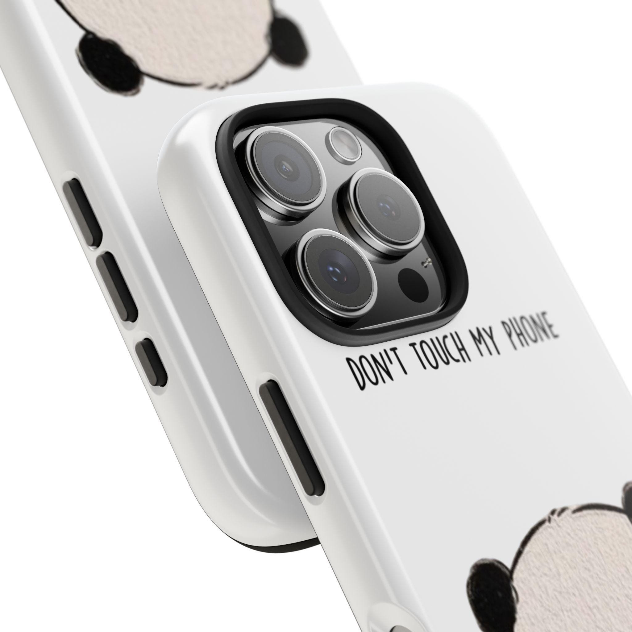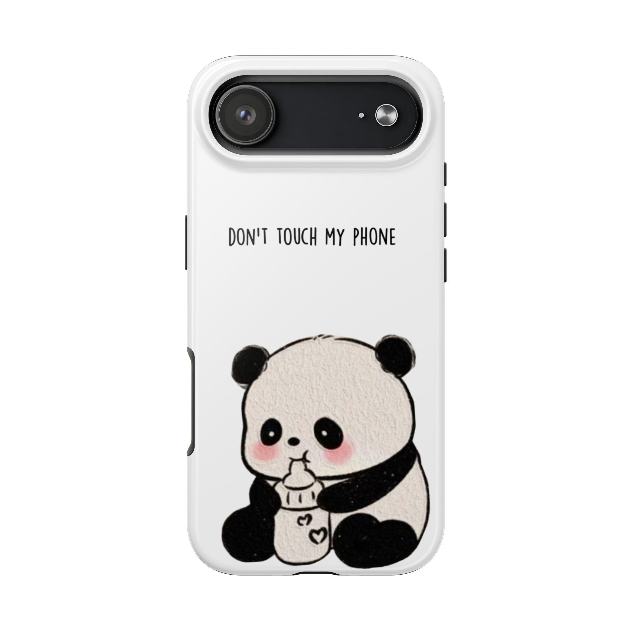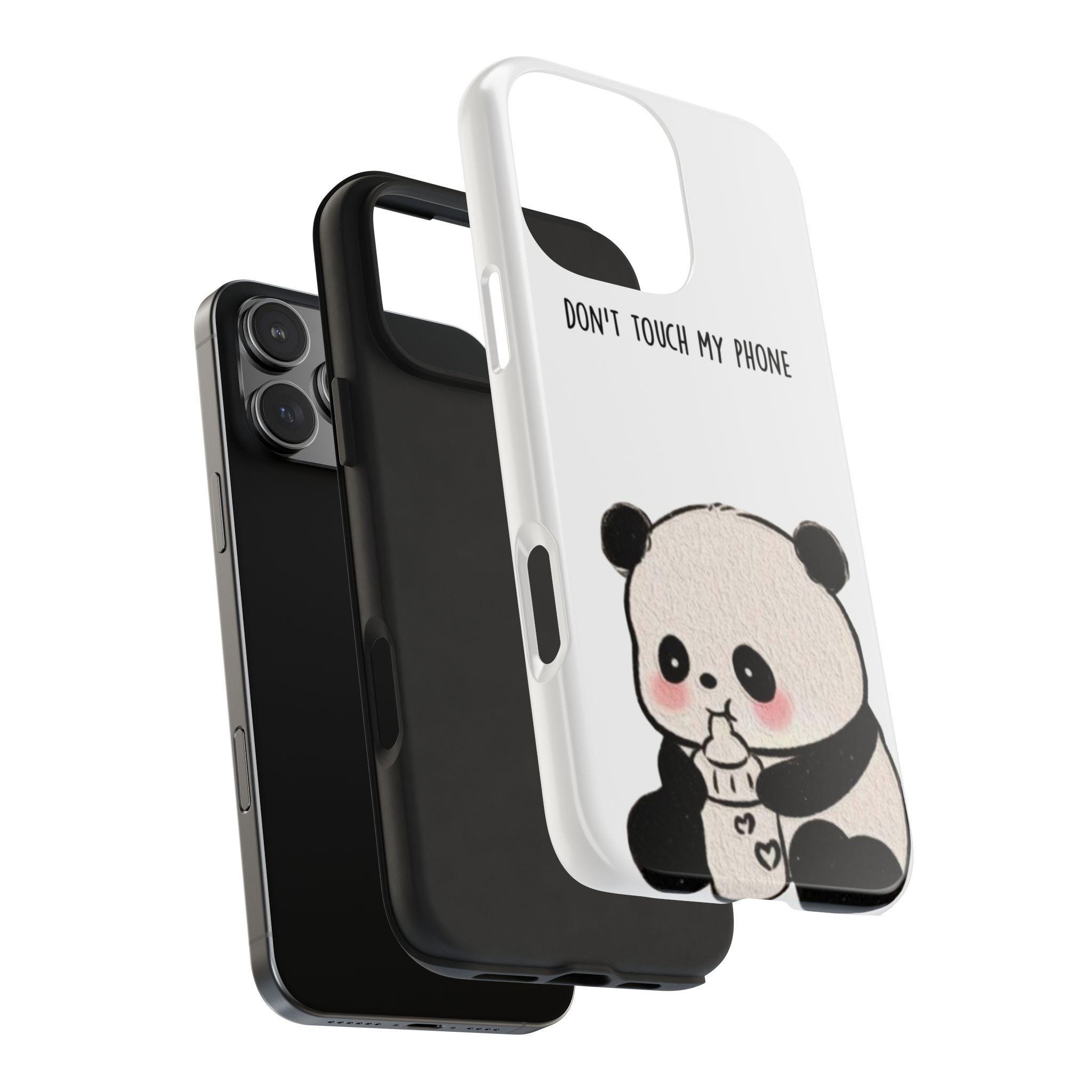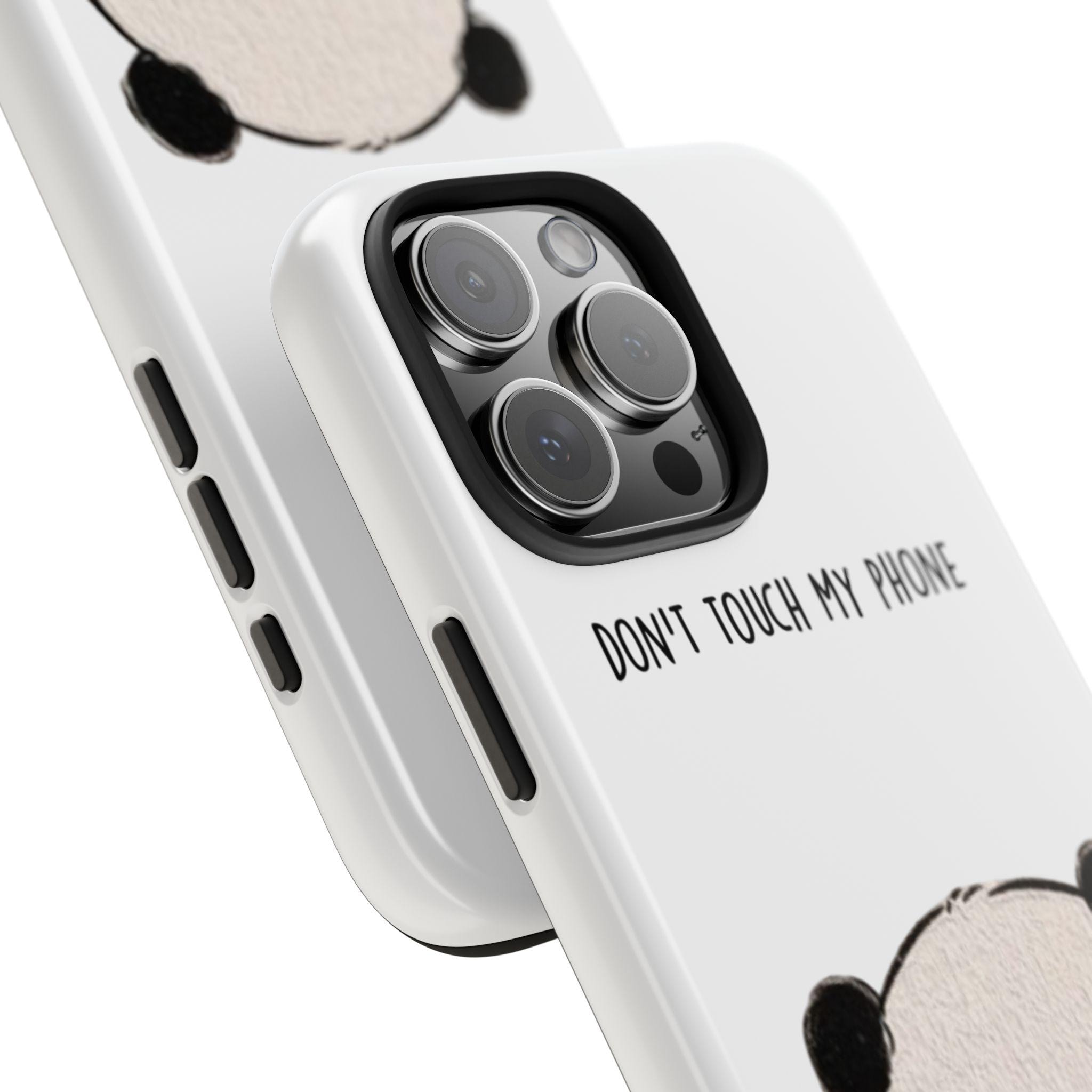 This slim, protective phone case wraps your device in a playful, soft-hearted vibe — a shy panda clutching a tiny drink with a cheeky “DON’T TOUCH MY PHONE” above. The smooth, glossy print preserves the hand-drawn textures and blushing cheeks while a two-piece construction (polycarbonate shell + TPU liner) absorbs shocks and disperses impacts. A raised bezel helps keep the screen safe when laid face down, and UV protection keeps the artwork bright through outdoor use. Lightweight and wireless-charging compatible, it brings both personality and practical protection to everyday carry.