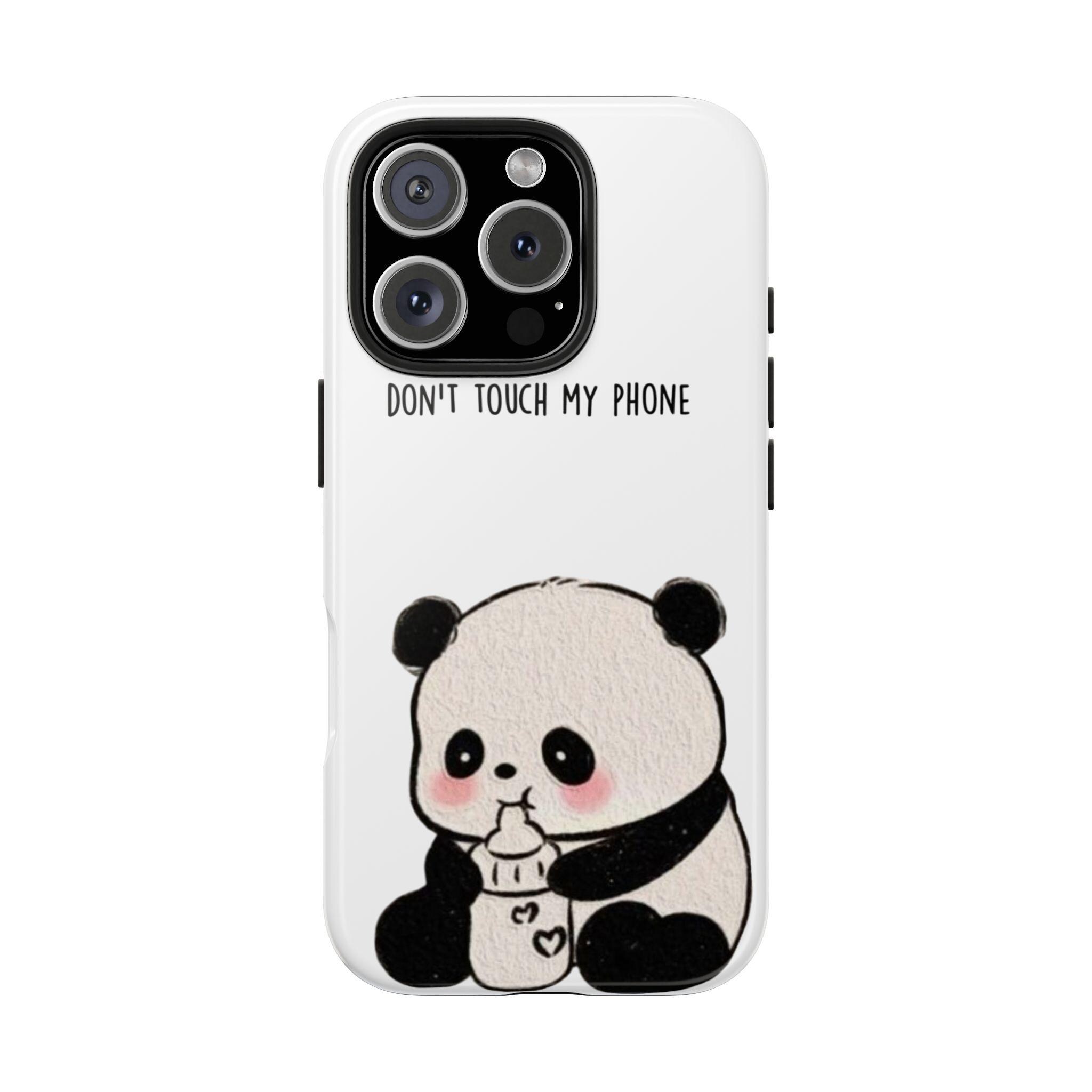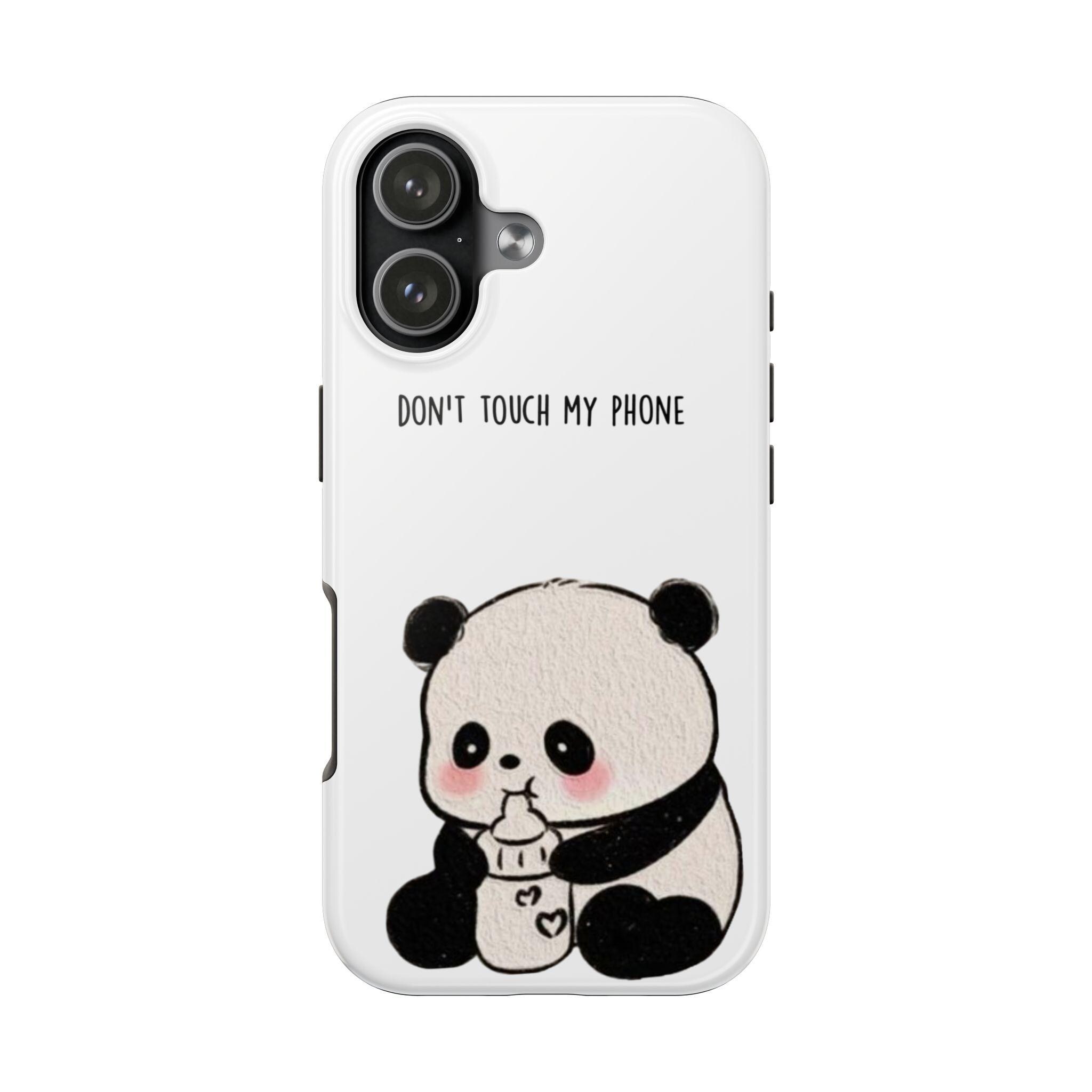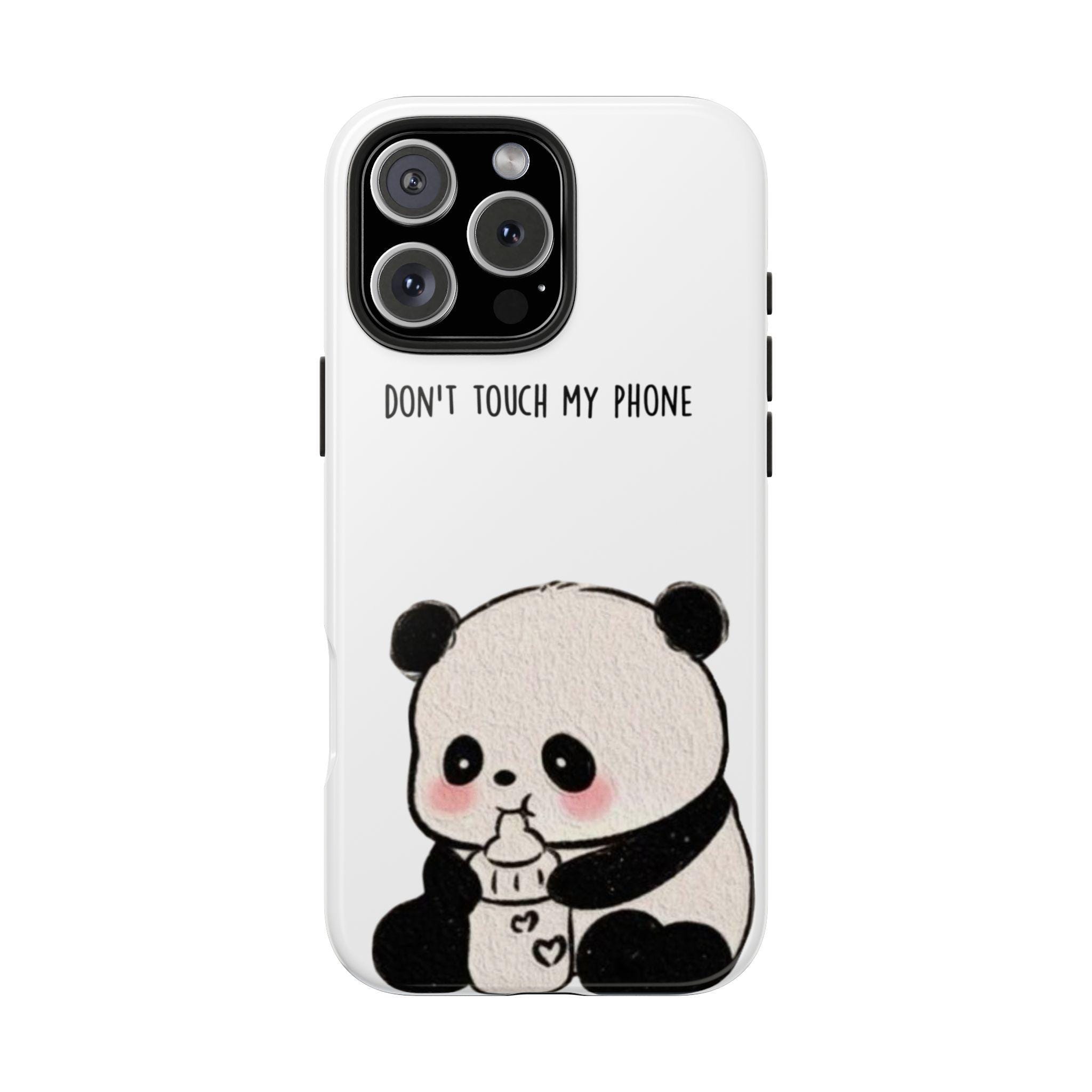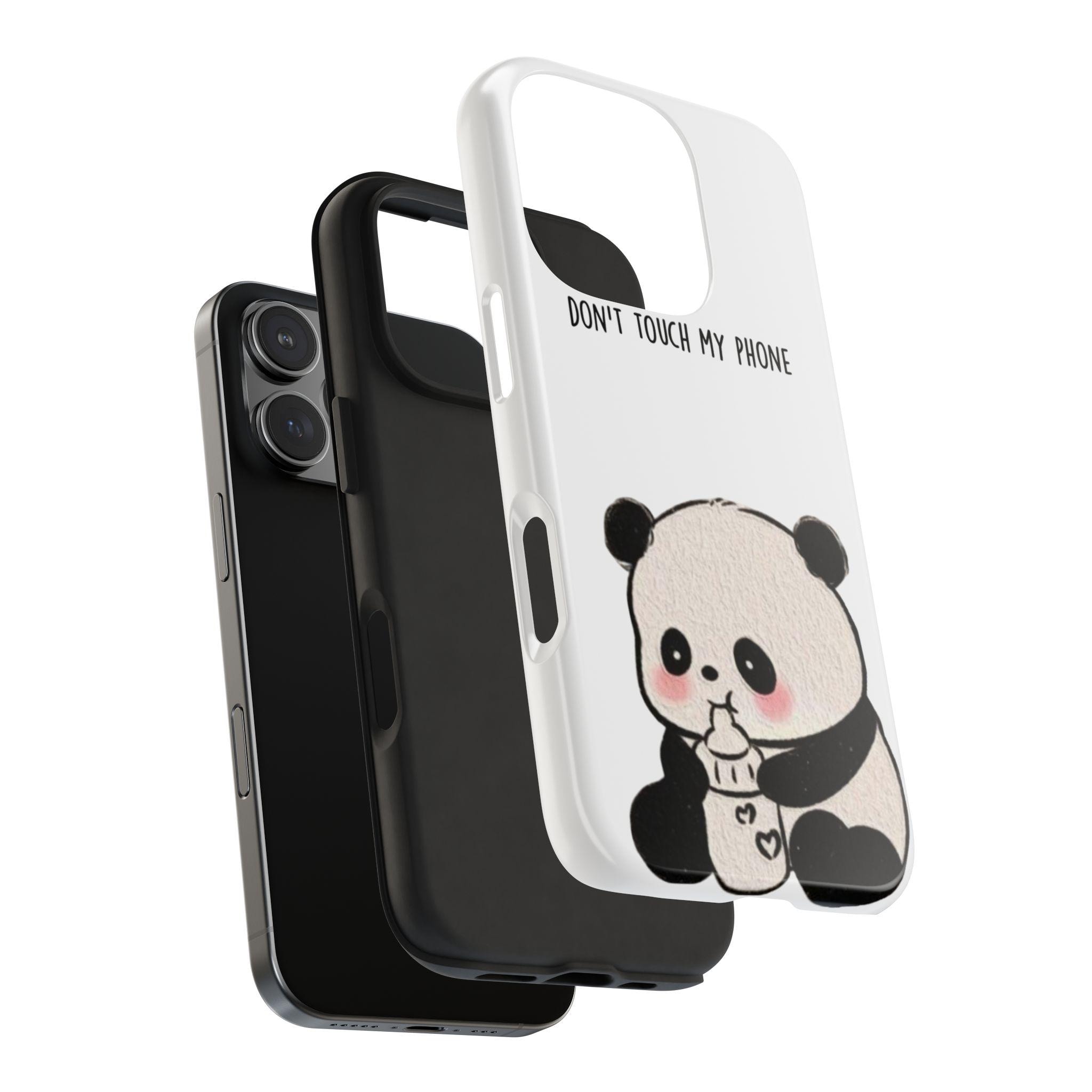 This slim, protective phone case wraps your device in a playful, soft-hearted vibe — a shy panda clutching a tiny drink with a cheeky “DON’T TOUCH MY PHONE” above. The smooth, glossy print preserves the hand-drawn textures and blushing cheeks while a two-piece construction (polycarbonate shell + TPU liner) absorbs shocks and disperses impacts. A raised bezel helps keep the screen safe when laid face down, and UV protection keeps the artwork bright through outdoor use. Lightweight and wireless-charging compatible, it brings both personality and practical protection to everyday carry.