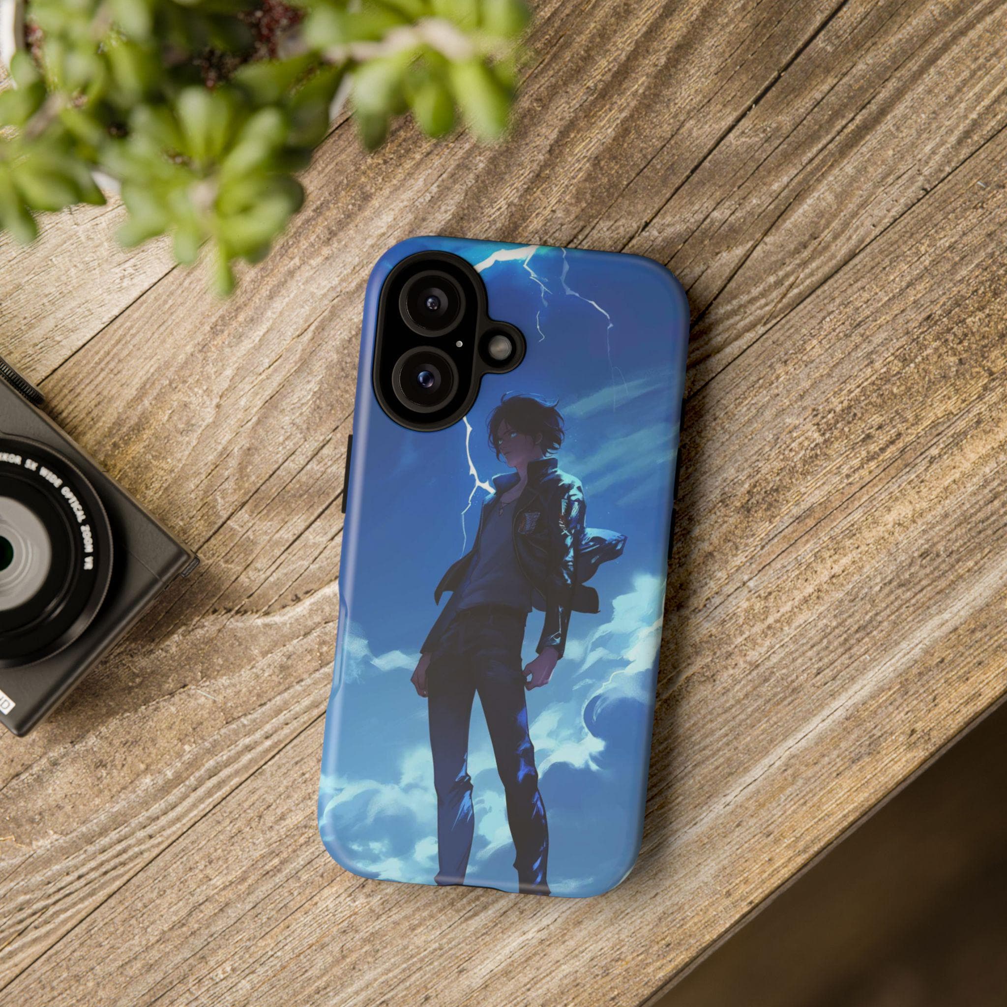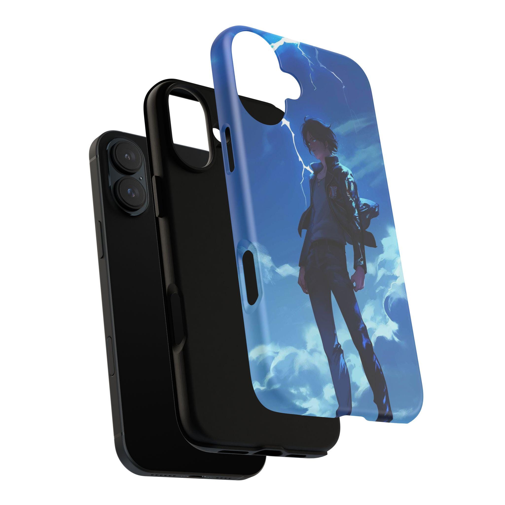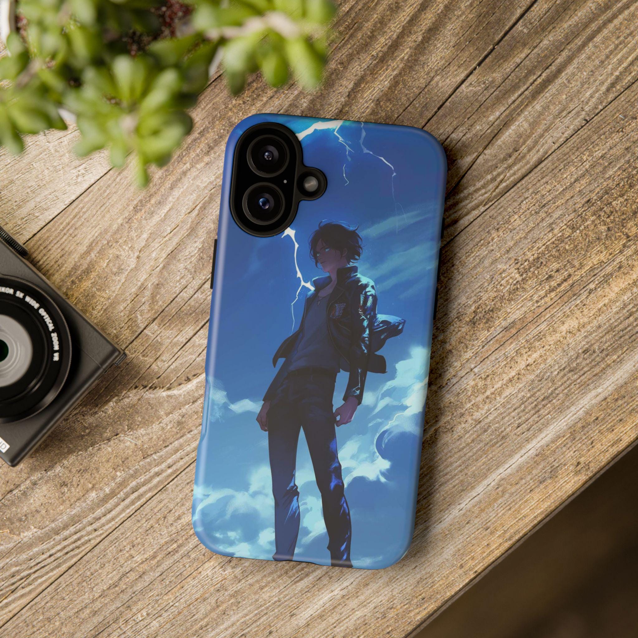 A striking protective phone case that blends bold durability with cinematic, moody art. The full-wrap print captures a lone figure backlit by stormy sky and jagged lightning, rendered in deep blues and soft highlights. A glossy or matte finish makes the colors pop while a dual-layer construction—rigid polycarbonate shell with a soft TPU silicone liner—absorbs shocks and resists daily wear. Thoughtful cutouts keep ports accessible and wireless charging works without removing the case. Weather-ready coatings protect the print from UV fading, and certifications like RoHS and REACH confirm safe materials. This case dresses your phone in a dramatic, atmospheric scene while keeping it safe from drops and scratches.