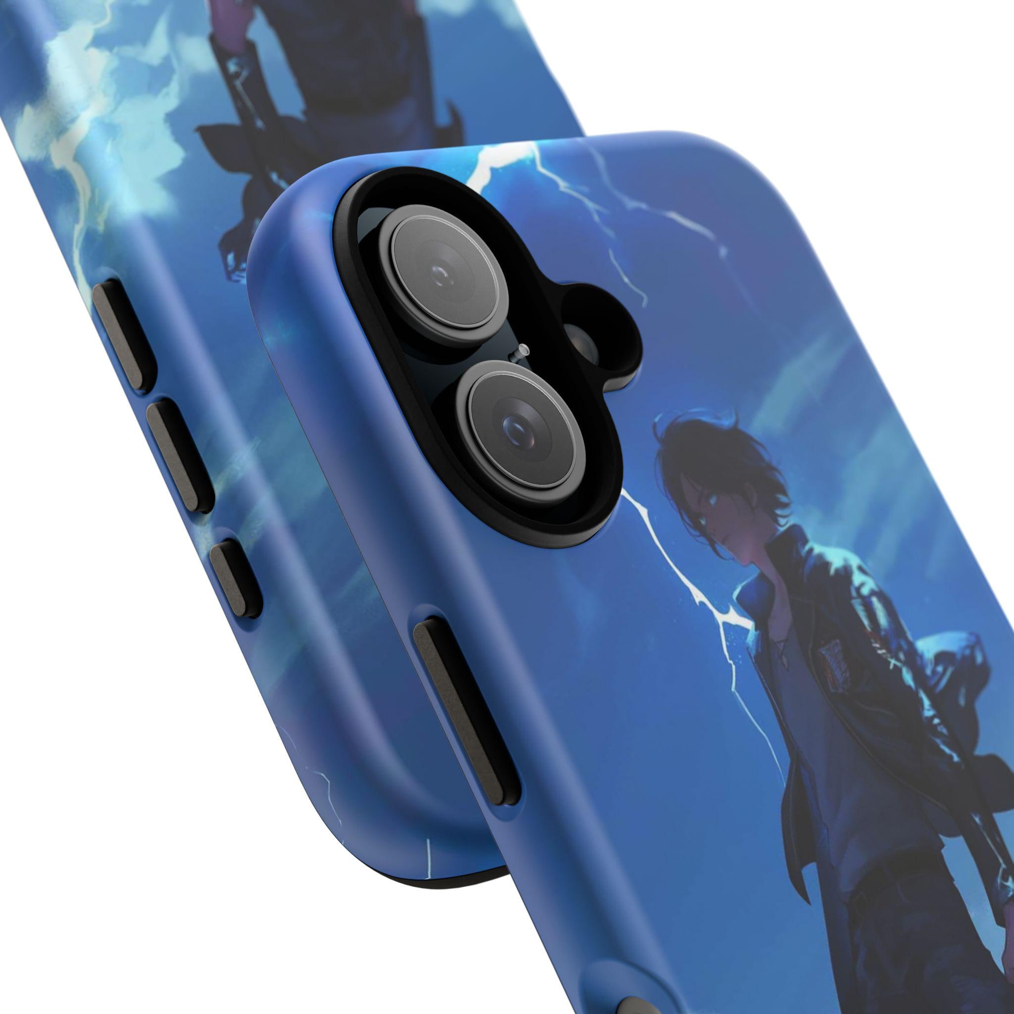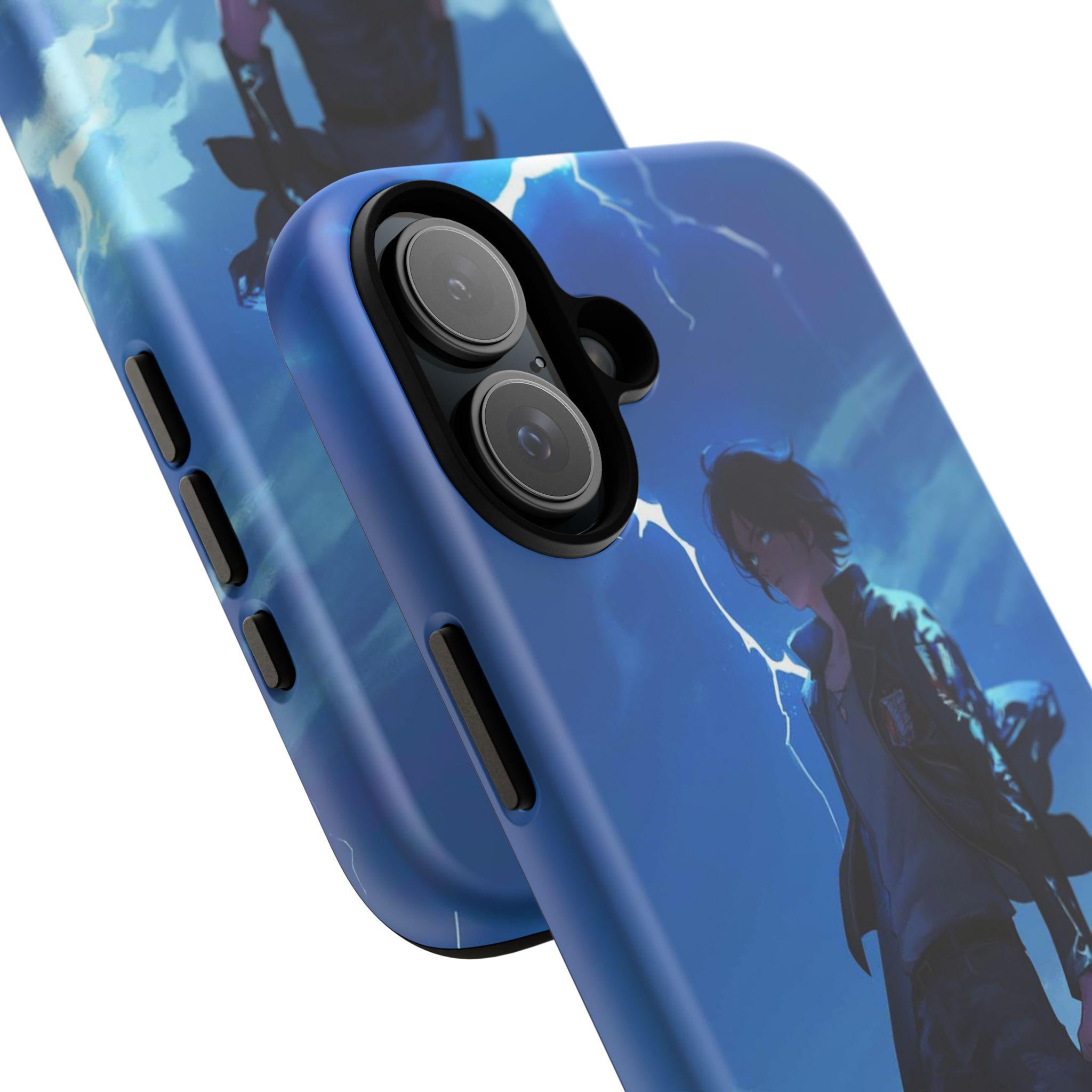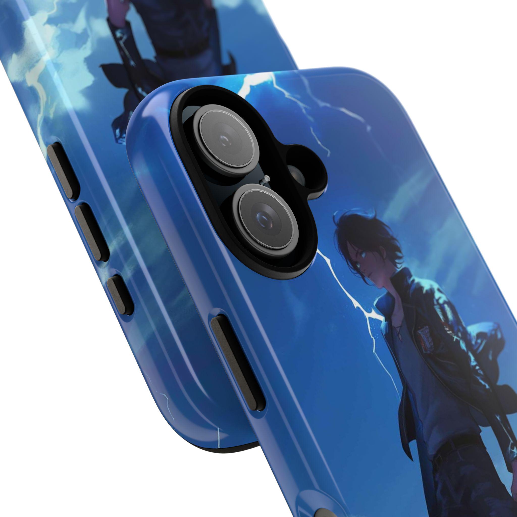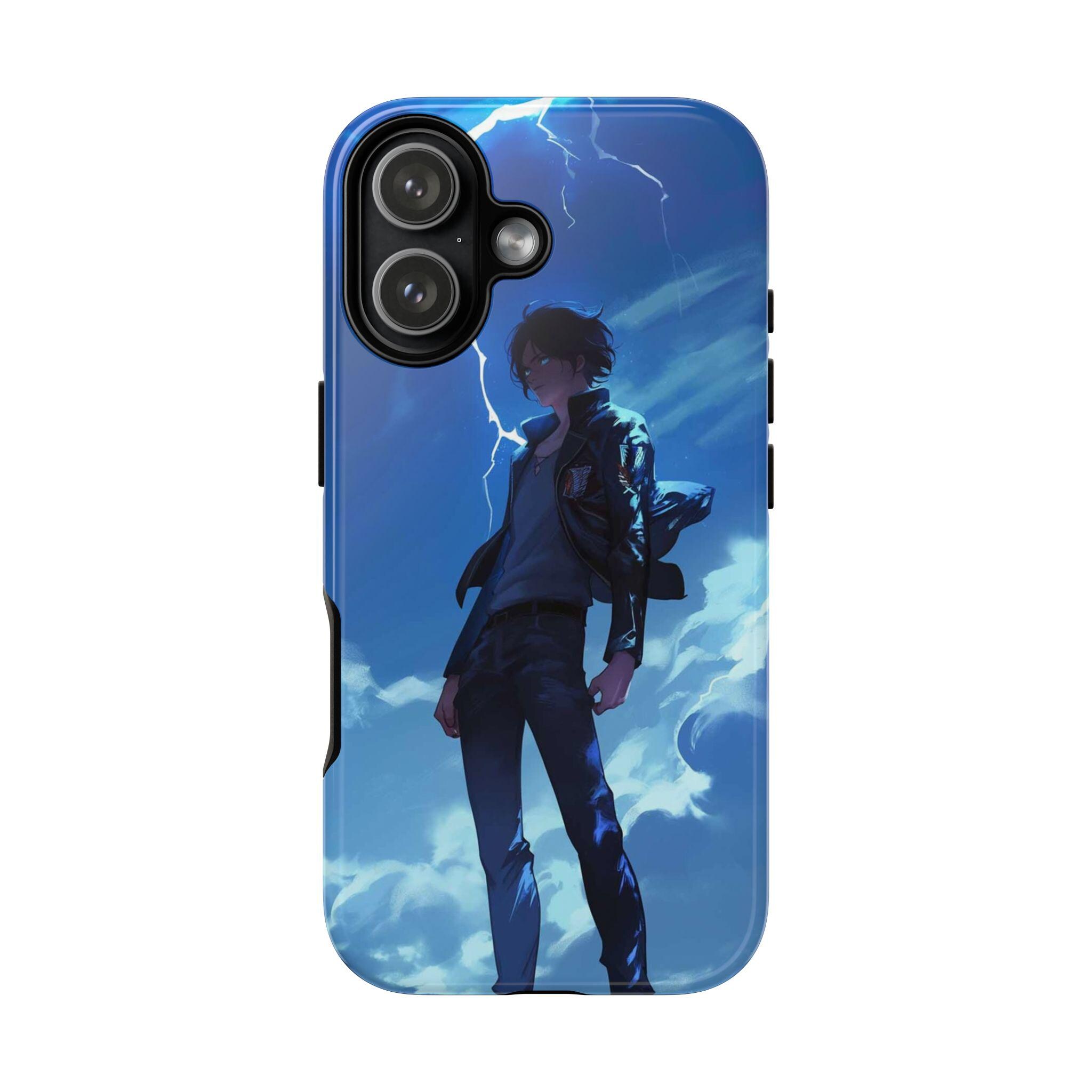 A striking protective phone case that blends bold durability with cinematic, moody art. The full-wrap print captures a lone figure backlit by stormy sky and jagged lightning, rendered in deep blues and soft highlights. A glossy or matte finish makes the colors pop while a dual-layer construction—rigid polycarbonate shell with a soft TPU silicone liner—absorbs shocks and resists daily wear. Thoughtful cutouts keep ports accessible and wireless charging works without removing the case. Weather-ready coatings protect the print from UV fading, and certifications like RoHS and REACH confirm safe materials. This case dresses your phone in a dramatic, atmospheric scene while keeping it safe from drops and scratches.