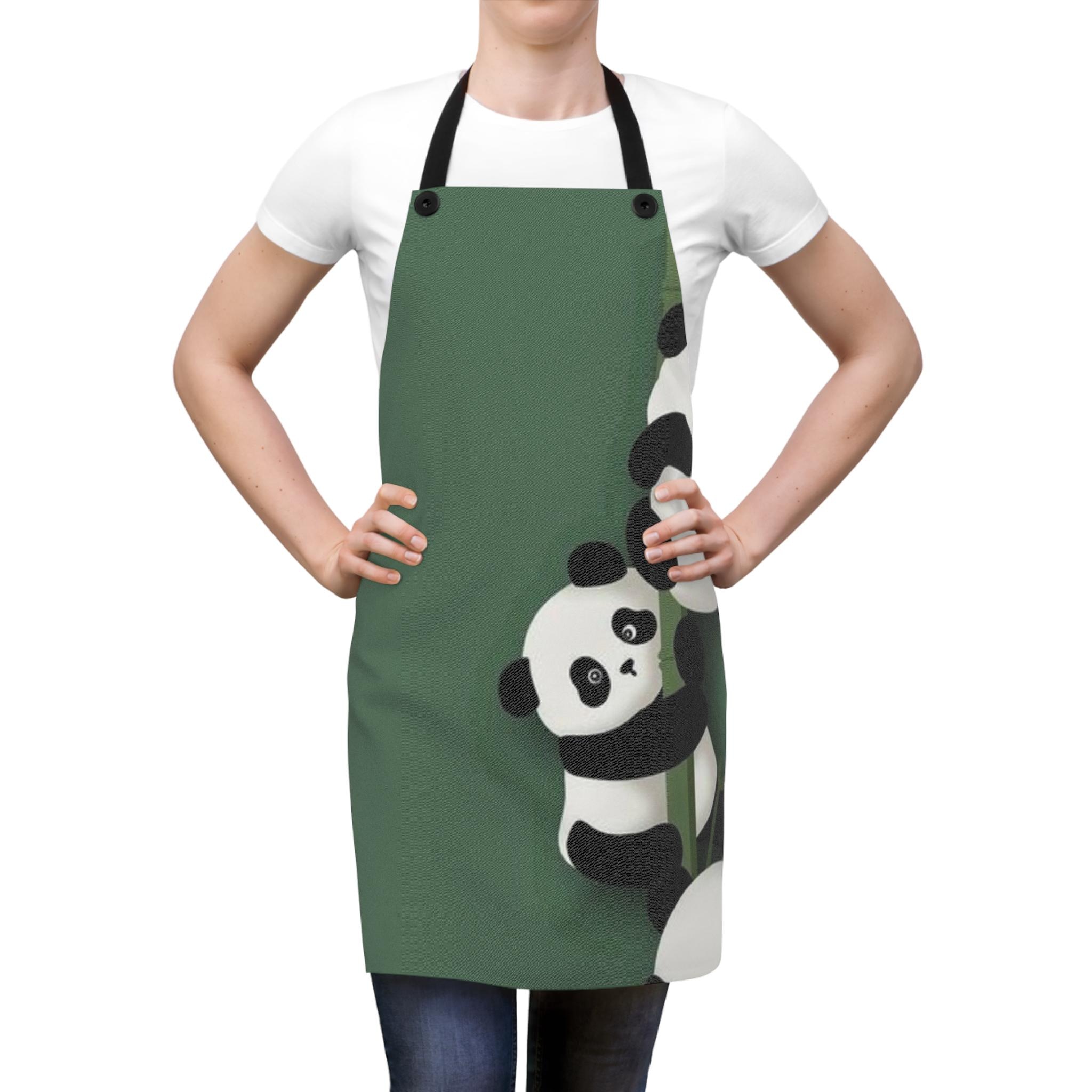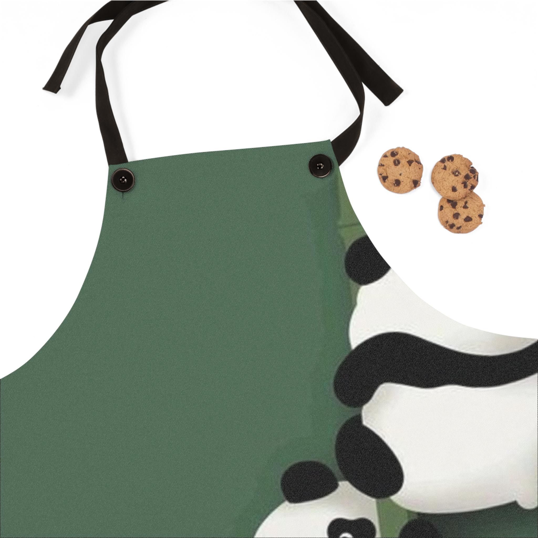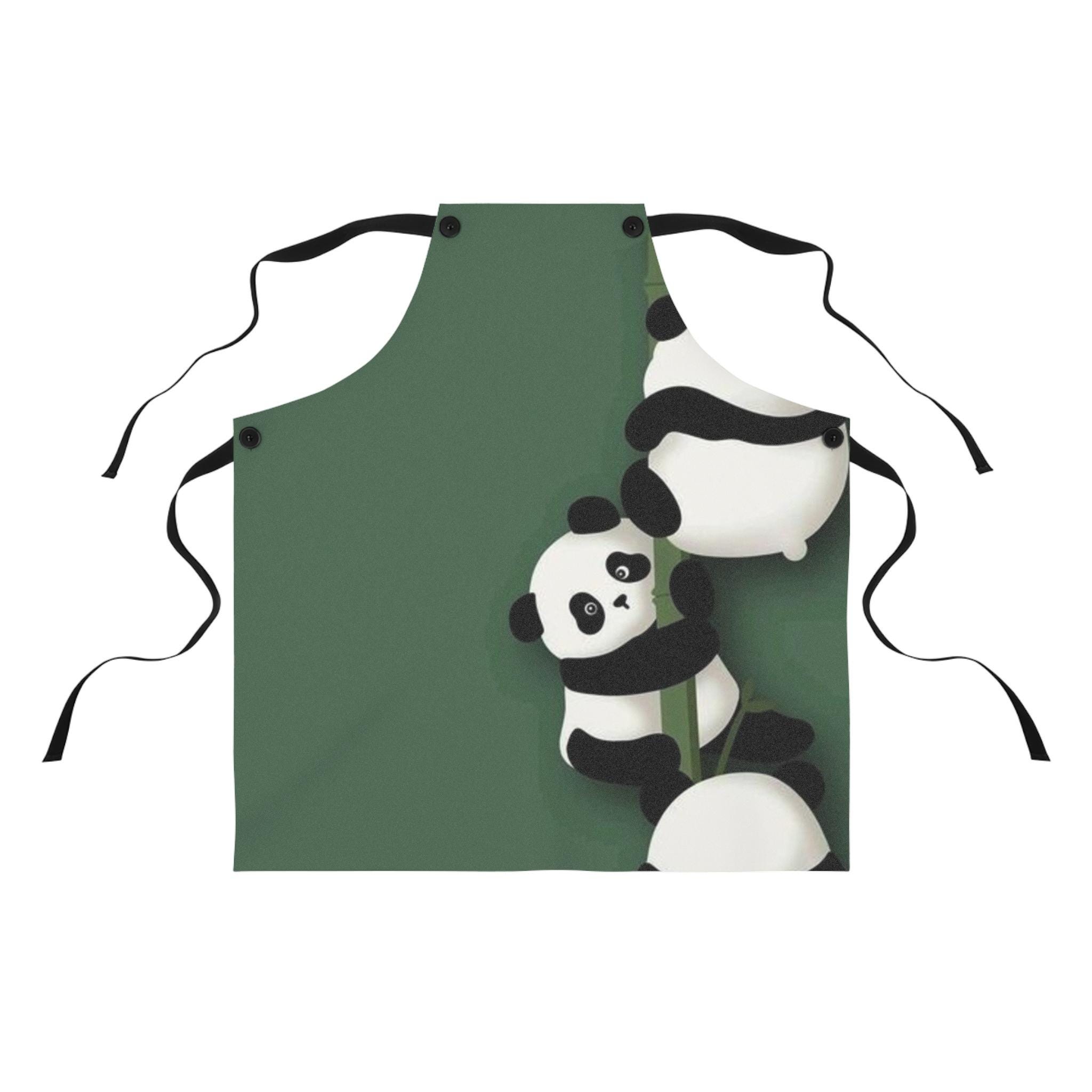 A friendly, durable apron made to brighten kitchen moments and small projects. The soft green background sets off a trio of playful pandas climbing in a stacked embrace, bringing a quiet, whimsical energy to cooking, baking, and crafting. The fabric holds its shape and dries quickly, so it weathers splatters and hands-on work with ease. Black detachable twill straps and four buttonholes let you adjust or remove the neck strap for a comfortable fit. Overlocked seams reinforce heavy-use areas so the apron stays reliable through many meals and messy experiments. It’s an apron that feels like a little companion — cheerful, sturdy, and ready for weekday dinners, weekend baking sessions, or cozy afternoons of making with kids.