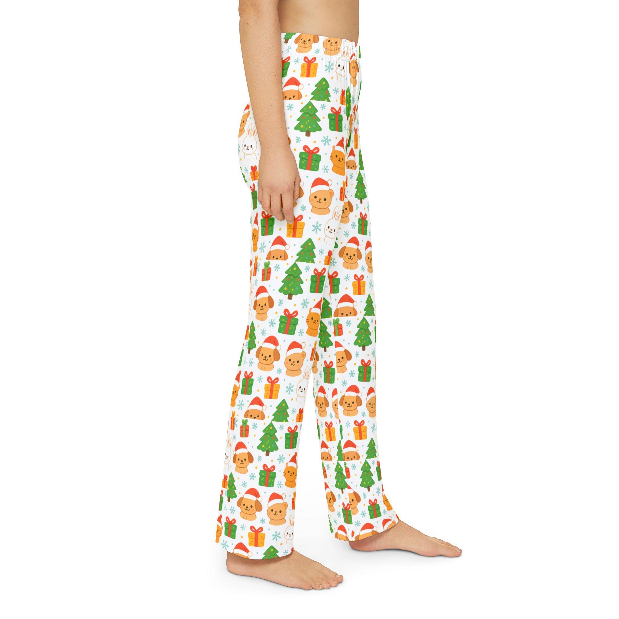 Soft, cheerful lounge pants designed for kids who love cozy holiday moments. Lightweight brushed polyester offers a gentle, smooth feel against the skin while keeping the playful all-over print bright and vibrant wash after wash. The elastic waistband and printed care label make dressing easy for little ones and caregivers alike. These pants slide into lazy mornings with cocoa, storytime under twinkling lights, or quiet play around the tree — a comfy, festive layer that brings warmth to everyday winter rituals.