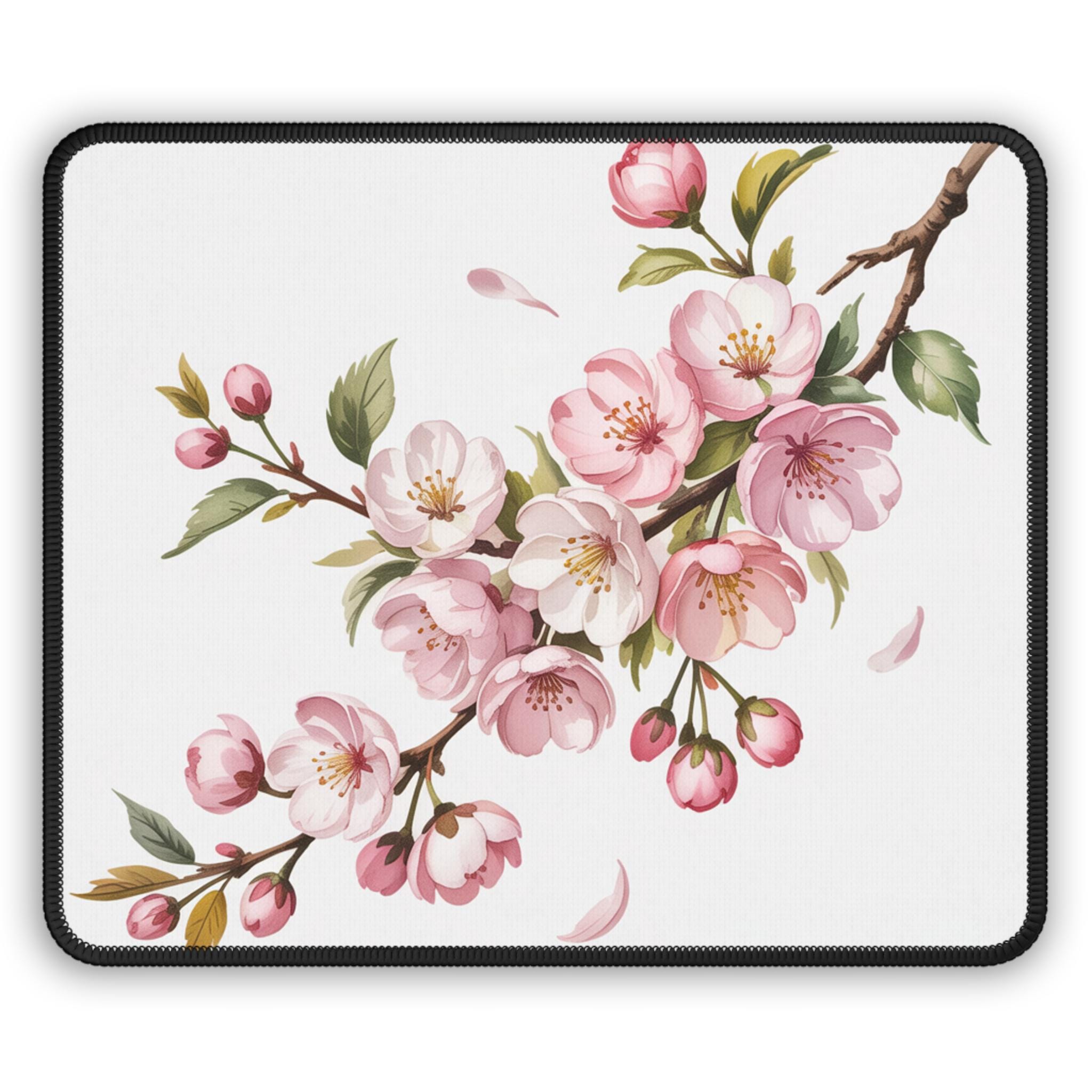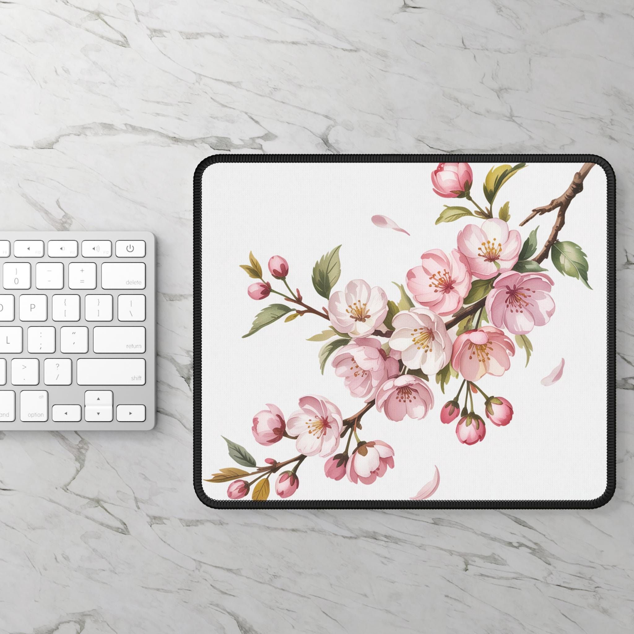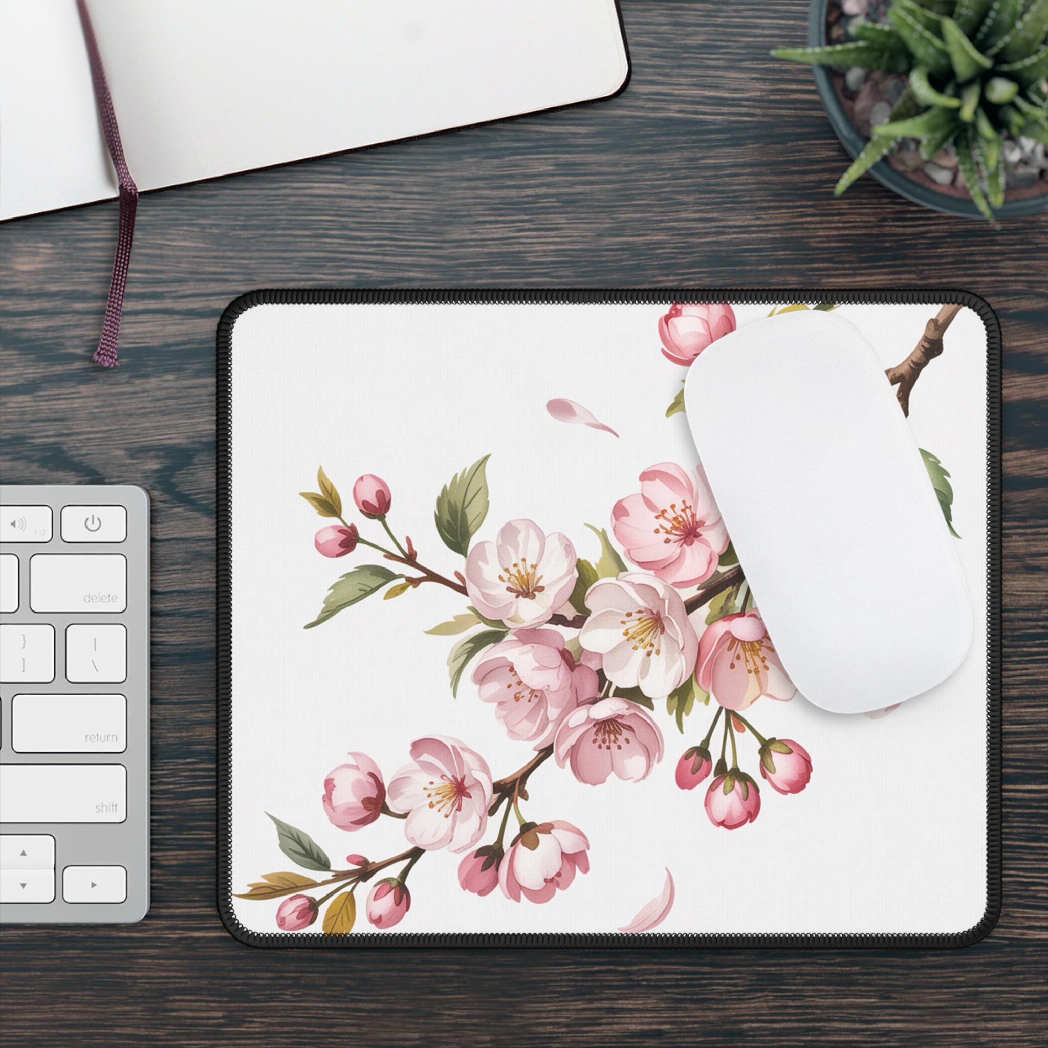 Bring a gentle, floral touch to your desk with this soft neoprene mouse pad. Delicate pink cherry blossoms float across a clean white background, creating a calming, artful workspace that invites focus. The smooth surface lets your mouse glide with precision while the stitched edges and anti-slip rubber base keep everything steady through long study sessions or creative bursts. It’s a simple way to add a moment of beauty to daily digital tasks — quiet, feminine, and thoughtfully made.