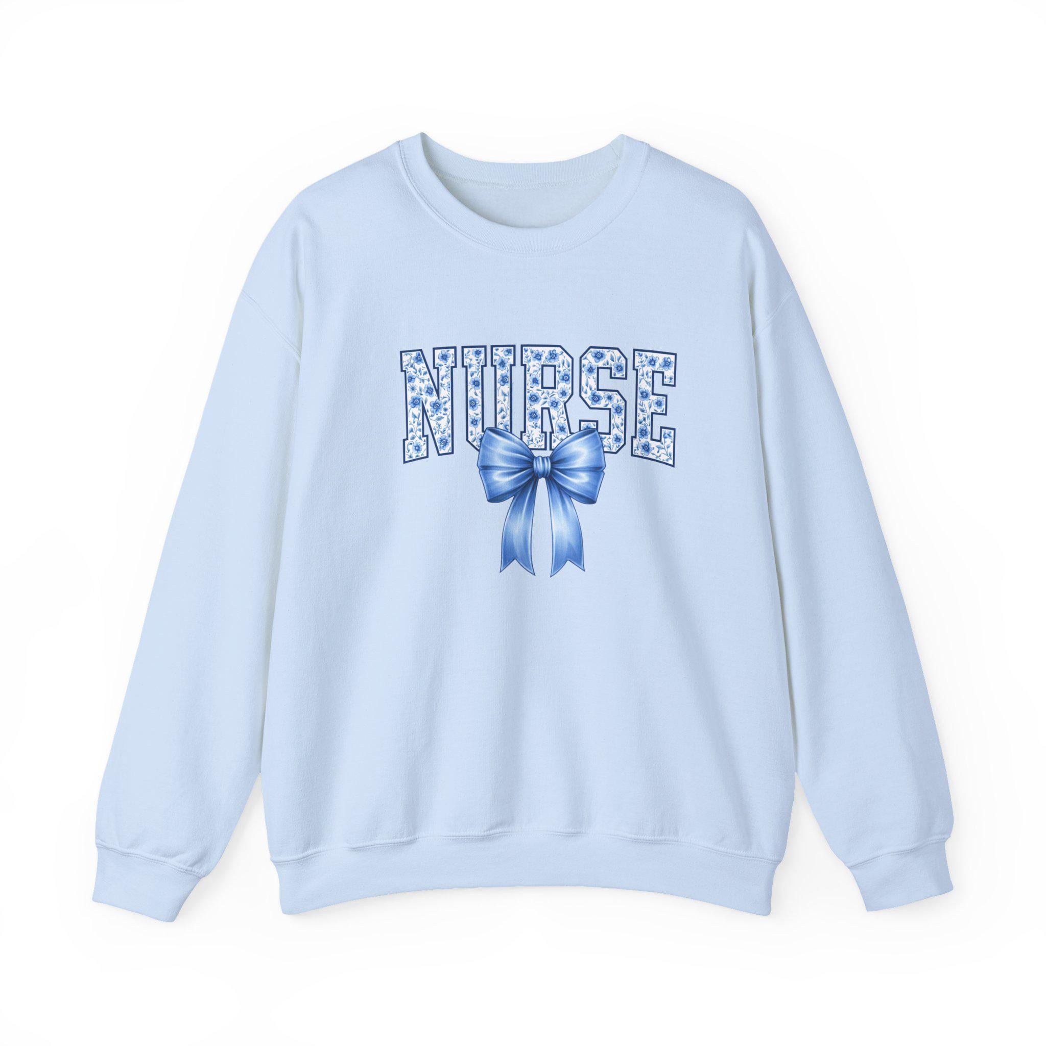 Soft, warm, and quietly confident — this crewneck wraps a caring heart in everyday comfort. The front features a gentle, ribbon-tied “NURSE” design in calming blue tones, a look that reads like appreciation rather than announcement. Lightweight but substantial, the sweatshirt layers easily over scrubs for quick warmth between shifts or becomes the go-to cozy layer on days off. It’s made to move with you: a classic crew neckline and relaxed fit let you reach, bend, and breathe without fuss. Thoughtful details — durable double-needle stitching, a tag-free neck for softness, and options for subtle embroidery placement — make it feel considered and personal. Wear it on early mornings, long shifts, or quiet weekends as a small, steady reminder of the care you give every day.