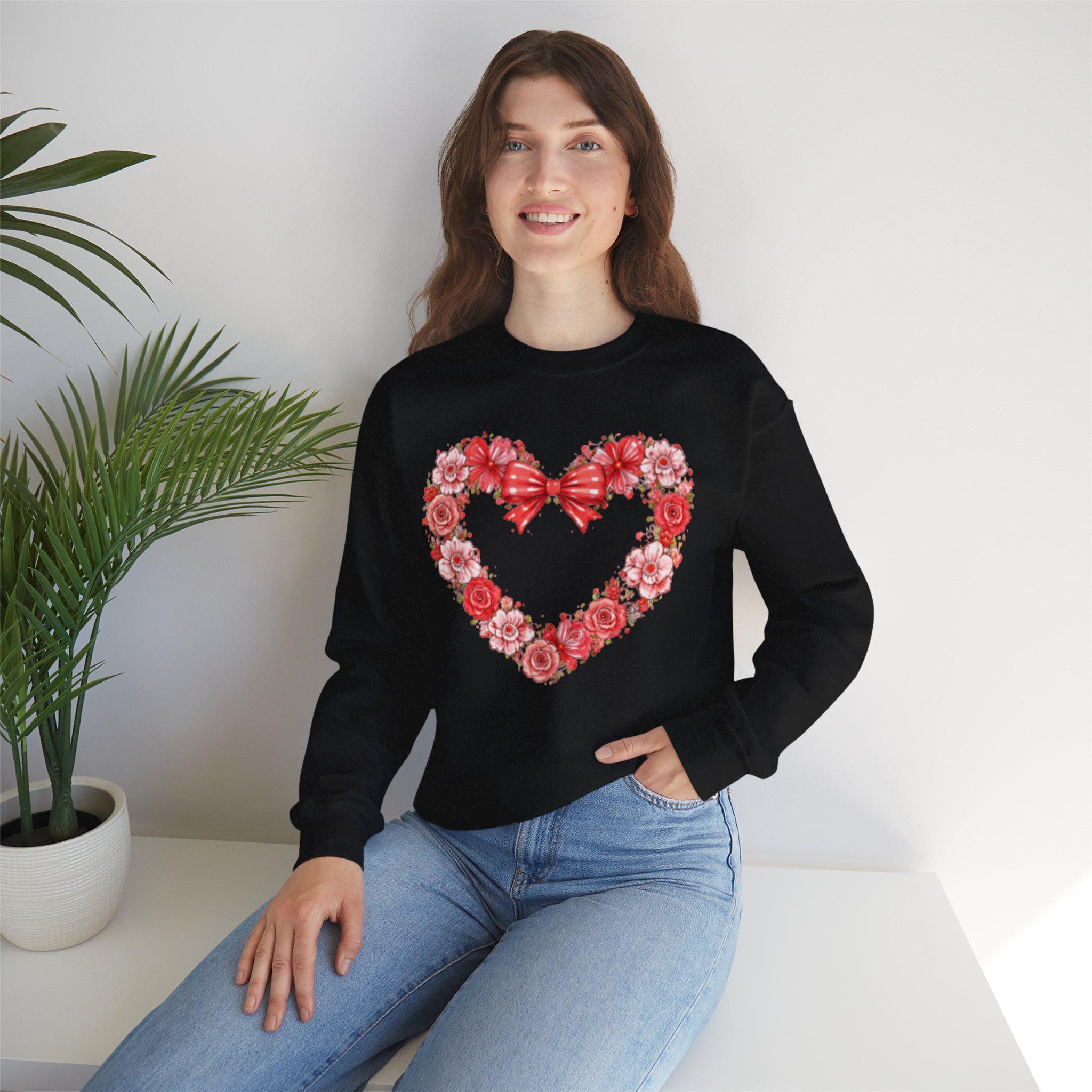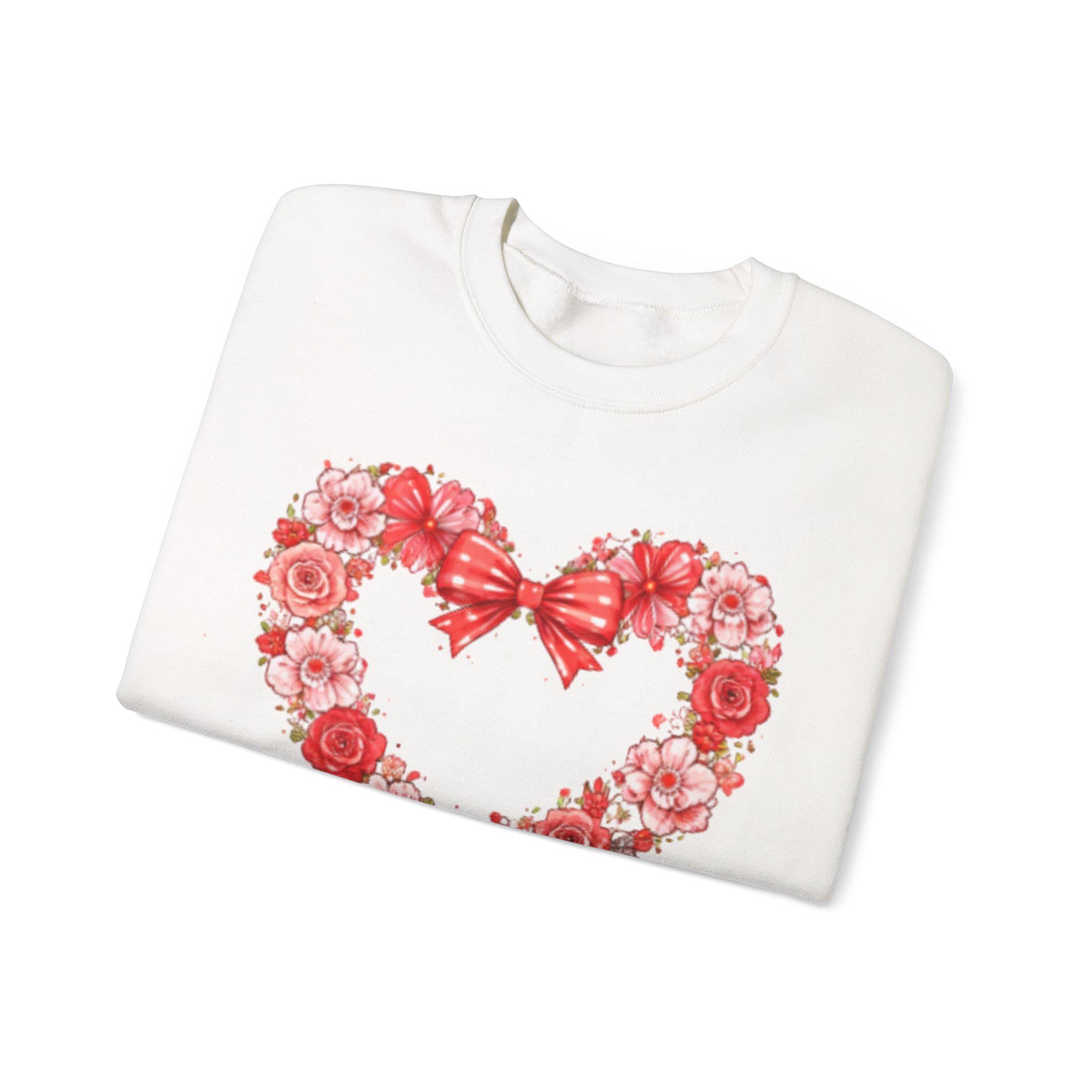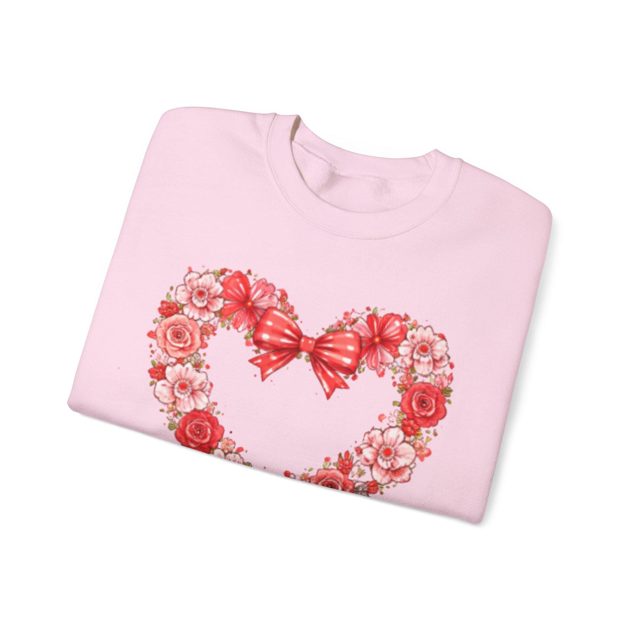Soft, warm, and quietly charming — this crewneck wraps you in a gentle moment. A delicate wreath of roses forms a heart at the chest, topped with a ribbon bow. It feels like a cozy afternoon delivering handwritten notes, lingering over tea, or surprising someone with a small kindness. The sweatshirt’s mid-weight knit and classic crew shape make it easy to layer over a tee or pair with jeans for a calm, thoughtful look. Subtle enough for everyday wear, it still reads as an intentional, sentimental piece that speaks to someone who values warmth, slow gestures, and handcrafted feeling.