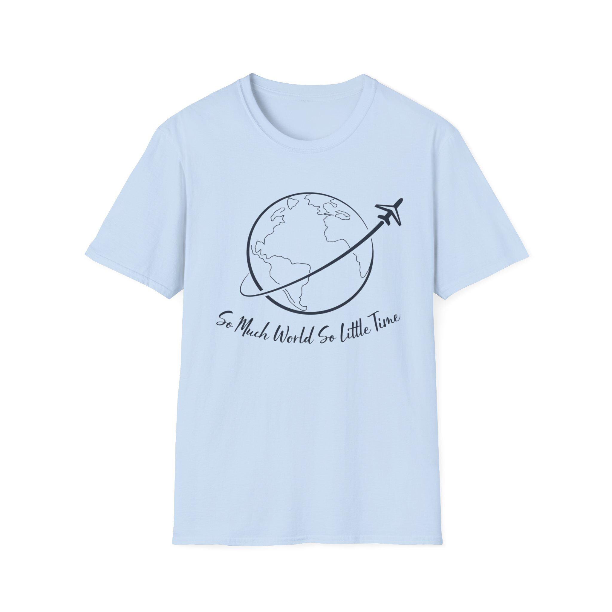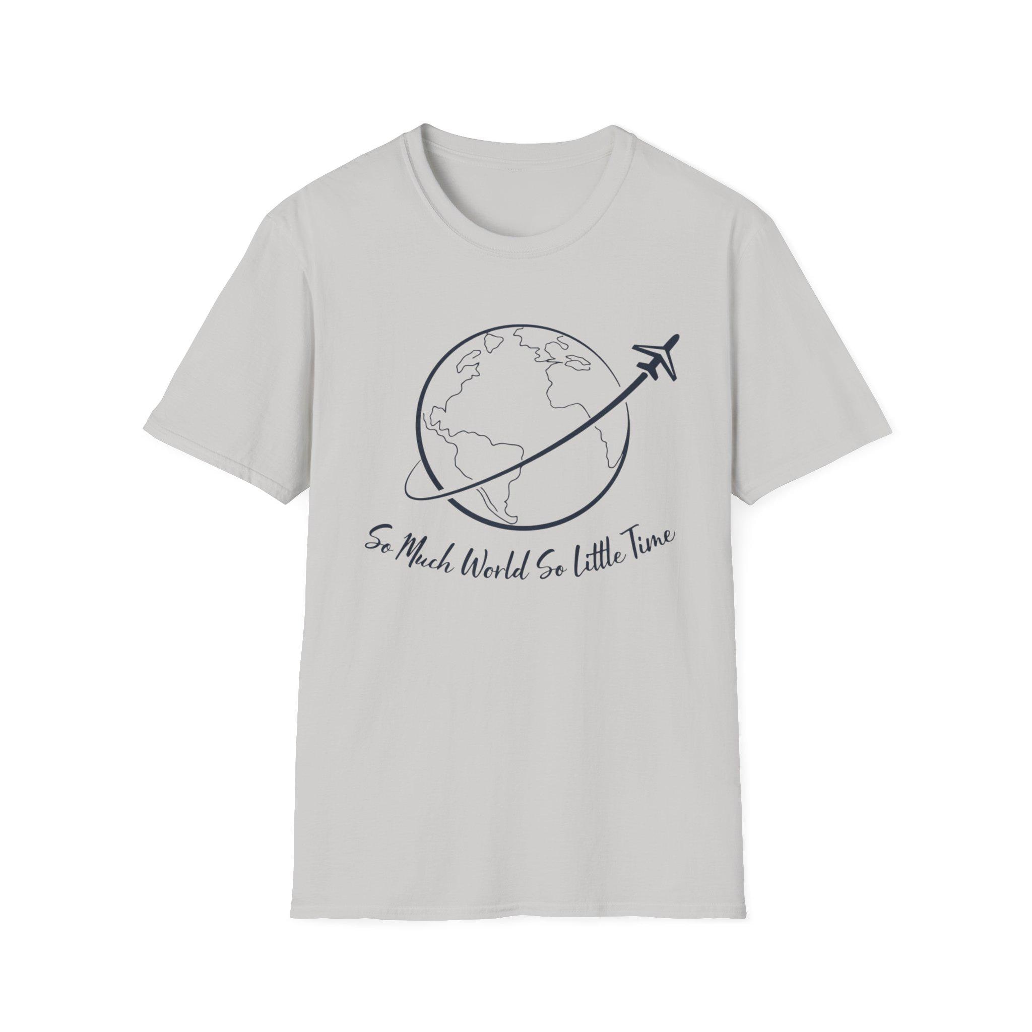 Lightweight, soft, and breathable—this crewneck tee carries a tiny travel story on its chest. A single-line globe and a looping airplane sketch curve across the front with the handwritten phrase “So Much World So Little Time,” inviting wanderers to move, plan, and daydream. The smooth ring-spun cotton feels gentle against skin and keeps prints crisp. Wear it on travel days, airports, casual city strolls, or layered beneath a jacket when chasing the next horizon. Its clean silhouette and subtle illustration make it easy to pair with denim, cargo pants, or a travel vest—an understated companion for people who collect stamps, stories, and sunrise views.